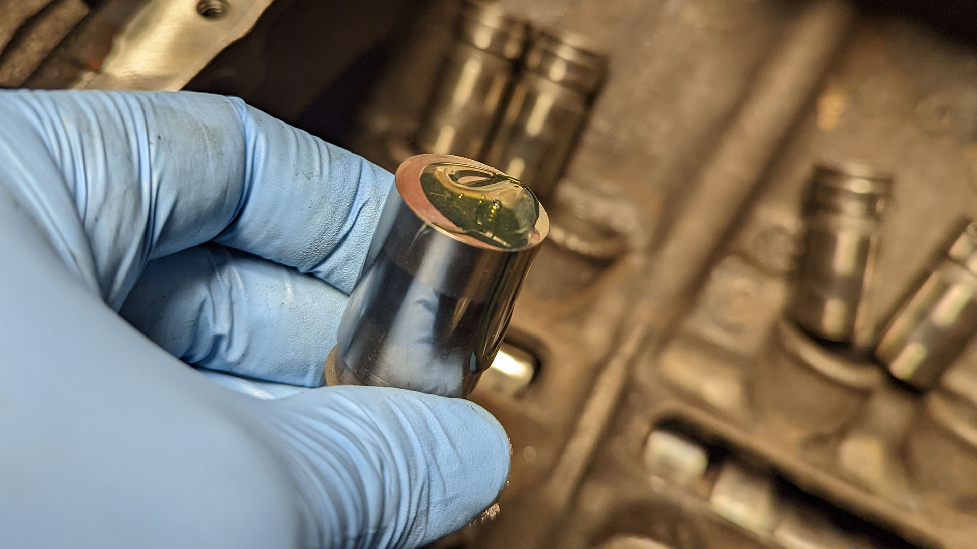 Once you’re done cleaning the lifter, all that’s left is to return it to the bore you pulled it from and carry on to the next. I like to take a lint-free rag with some solvent and give the lifter bore a quick pass for good measure. Then I dab the lifter with some assembly lube, spread it around, drop it back in place, and move on.