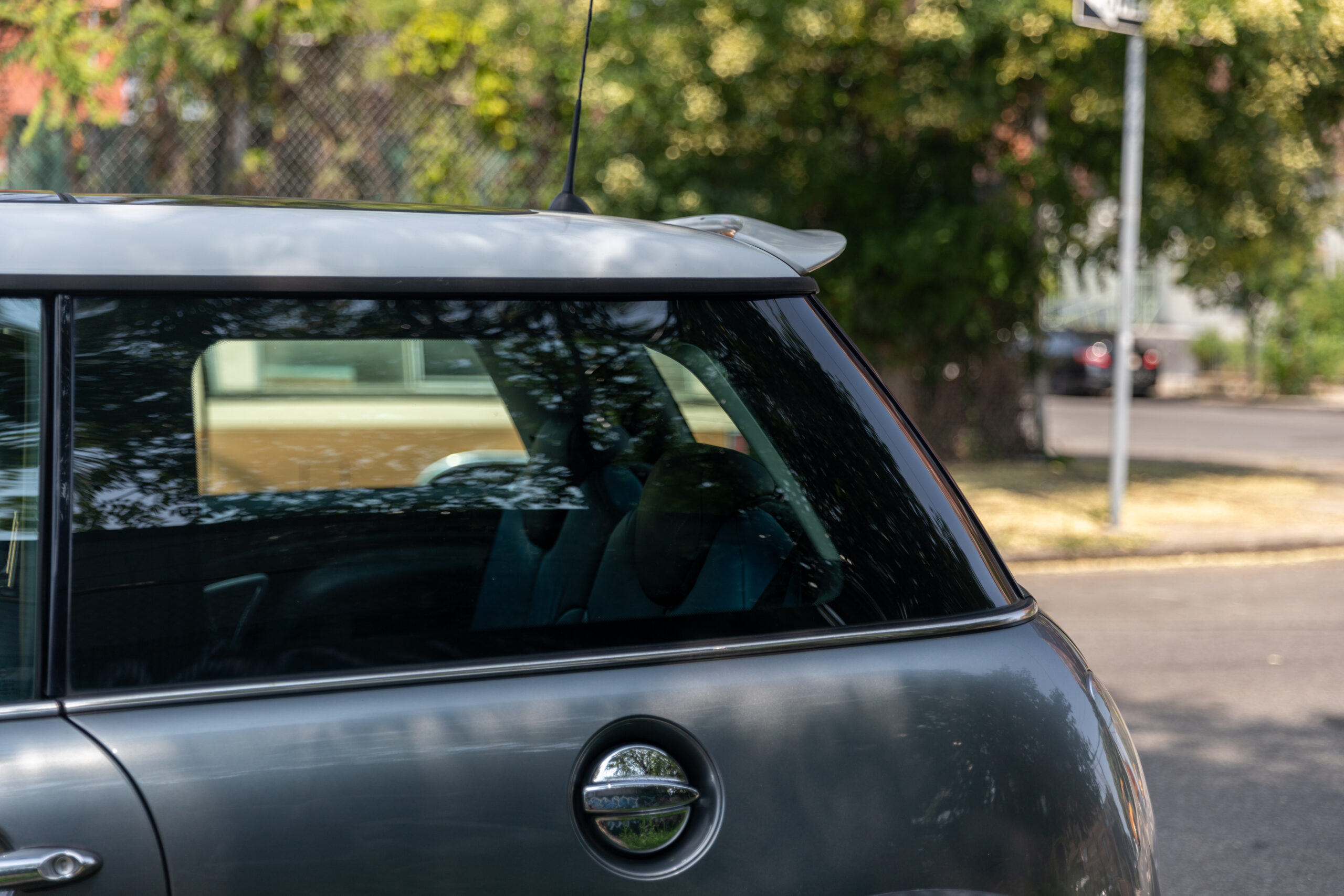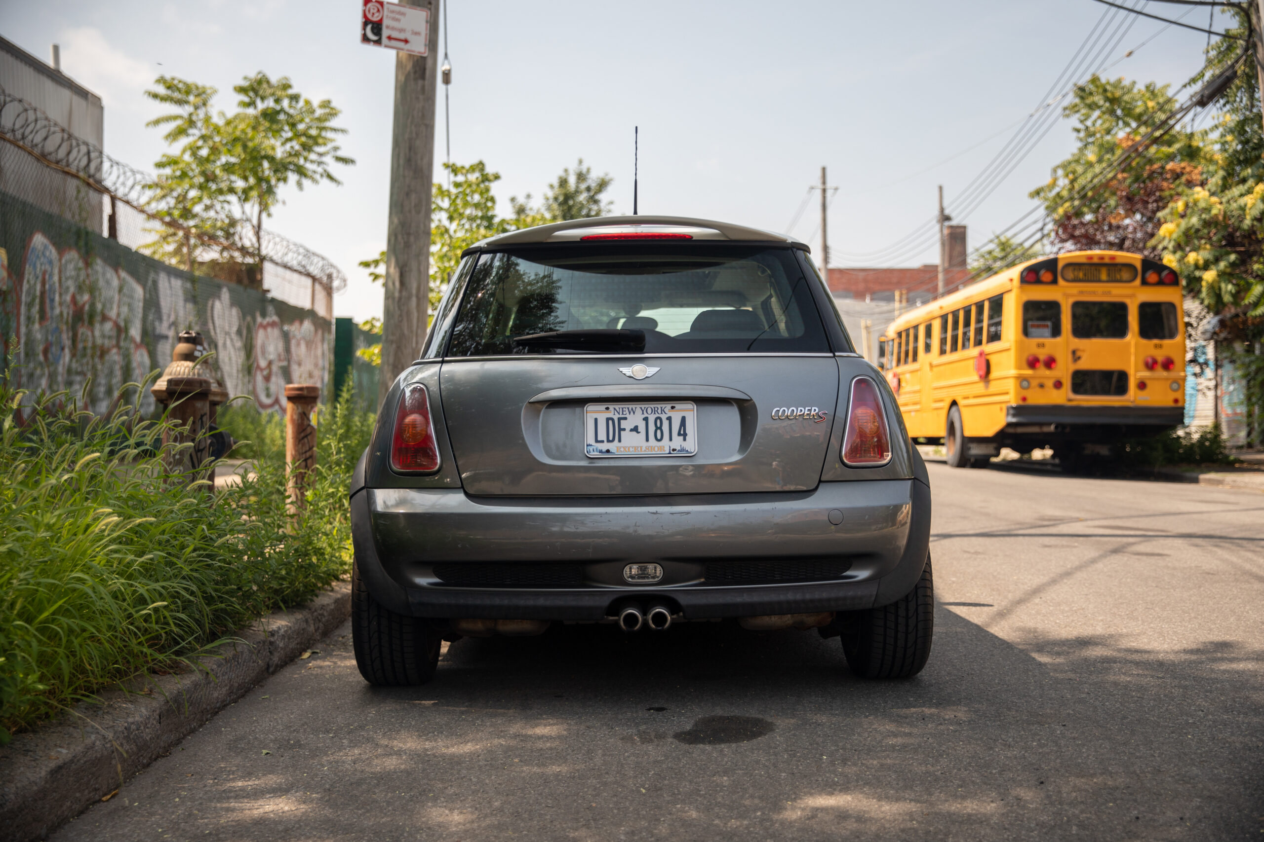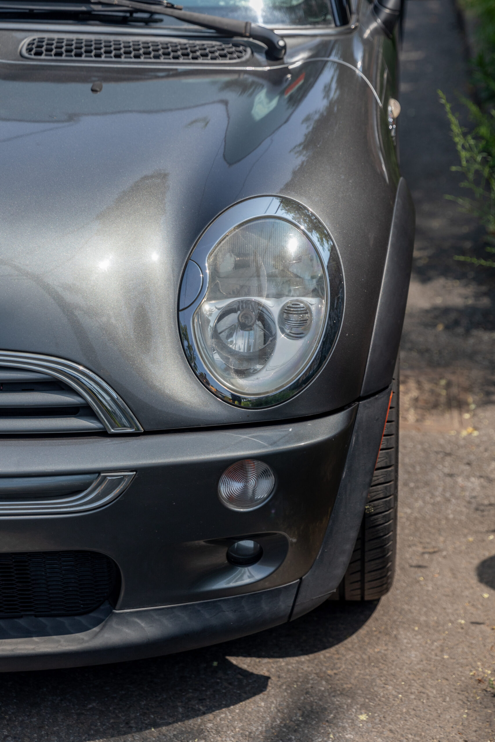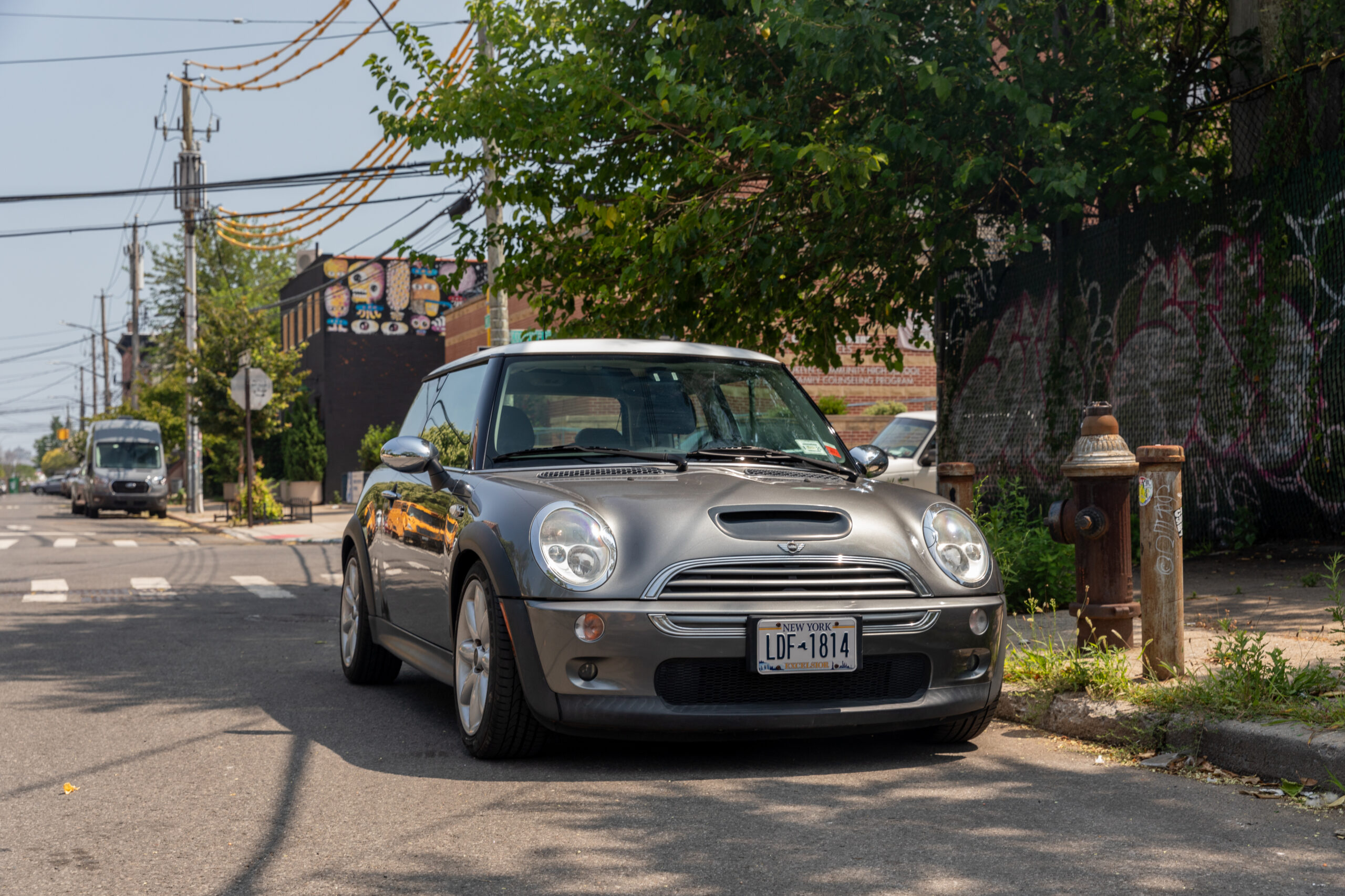 Dark gray with a white roof and two tone black/blue interior, there it was, with a phone number displayed in the curb-facing window. “Not today,” I thought, as I lingered on the street corner. A month passed. I checked on the Mini during my morning runs, tracking its progress across the street and back again. Little clues like its beat-up Empire State license plate hinted that it might still be with its original owner. Its stock exterior and the presence of a child seat suggested that person was also a responsible adult.