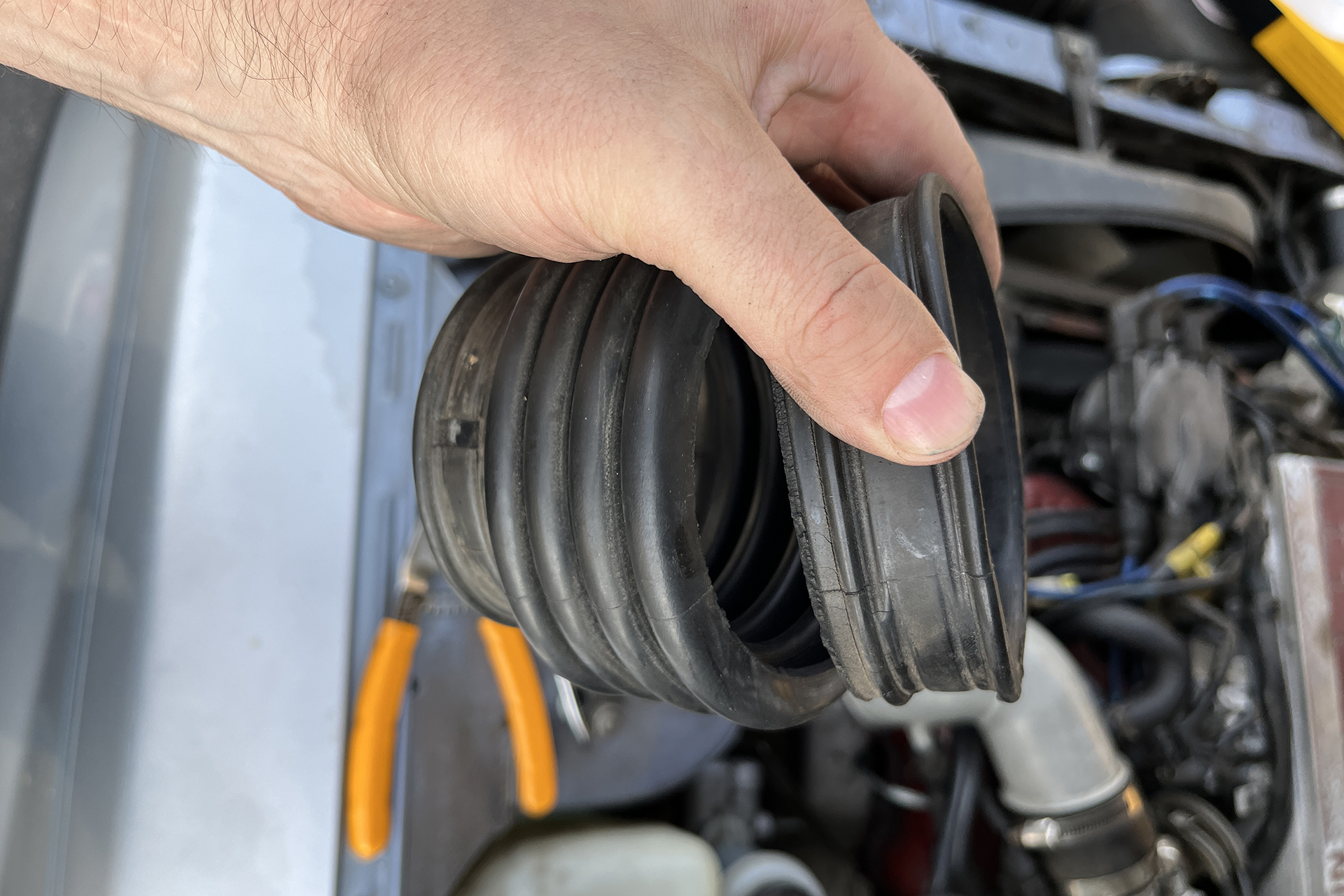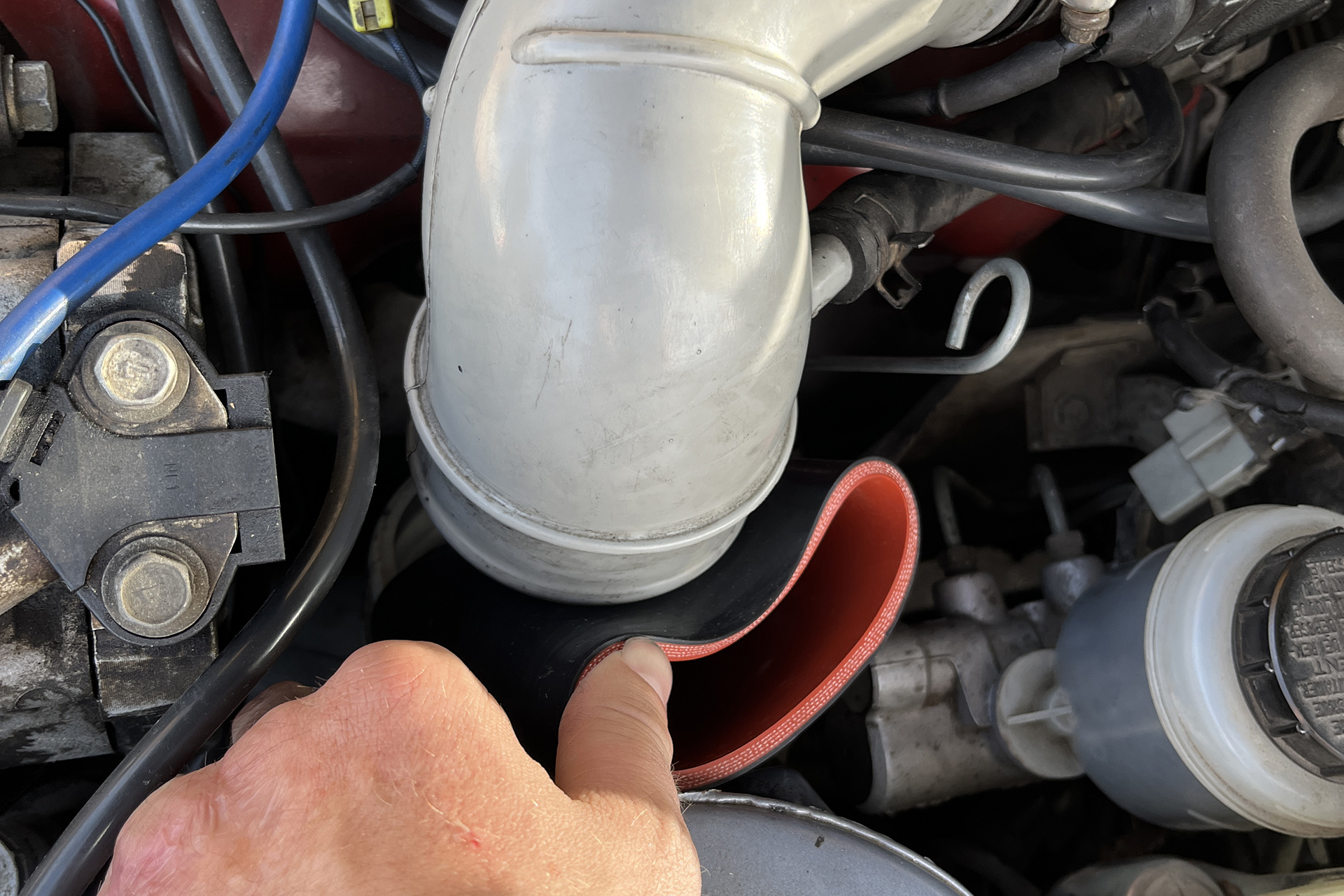 I made another pass at trying to find an OEM part online, but nothing would arrive quickly enough for me to make my intended departure. Finally, a friend I’d been texting with about my conundrum mentioned he’d used Home Depot hoses for intake parts on his Porsche 944 in the past in a pinch.