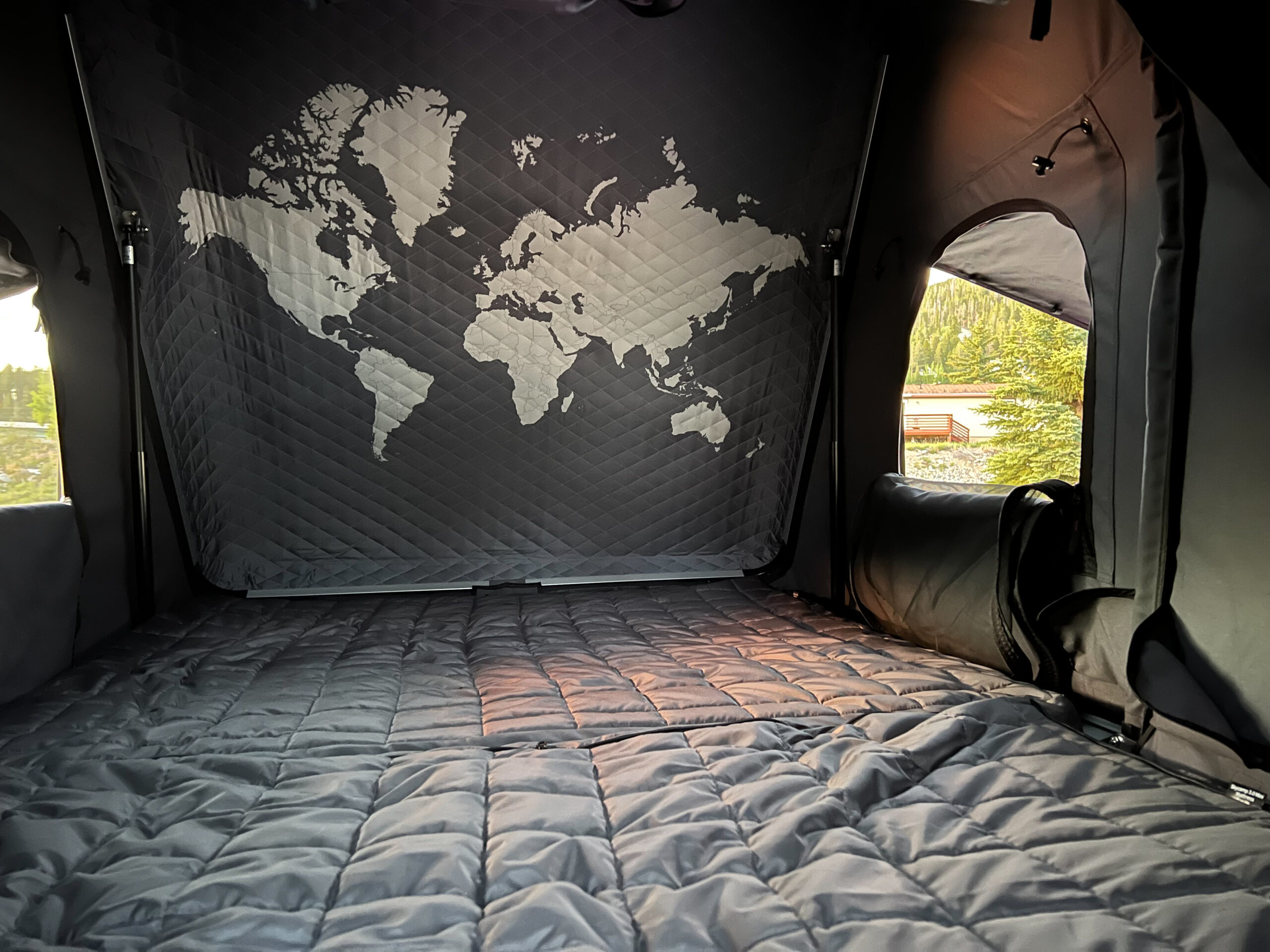 iKamper advertises a one-minute setup, apart from installation, and it rings true. Without even reading instructions, I was able to set up this tent effortlessly. The process goes: Unlock the two exterior locks, push up the top of the “clamshell” and let the hydraulics pop up your tent, extend the telescoping ladder, and fold out the floor. Lastly, move your mattress into place on the floor, set up the tension poles in your doorway, and make your sleeping space comfy. Just like that, you’re camping.