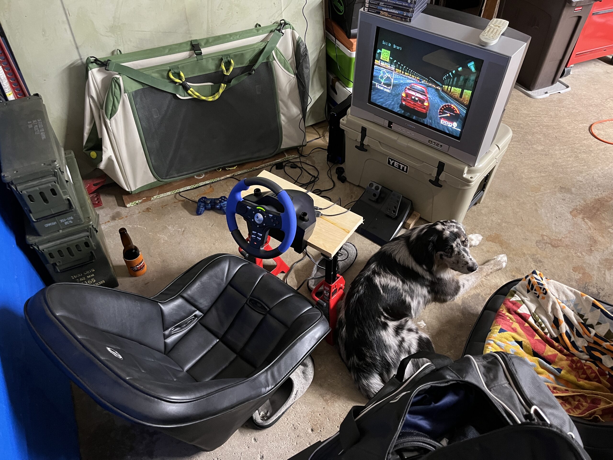 This project involves sourcing PlayStation 2 (PS2) hardware and software, including a period-correct CRT monitor and steering wheel, to use to play driving games. But the best part is the environment I’m building. The console and screen will be installed and integrated into a gaming station that utilizes a car seat and ultimately creates a luxury arcade experience.