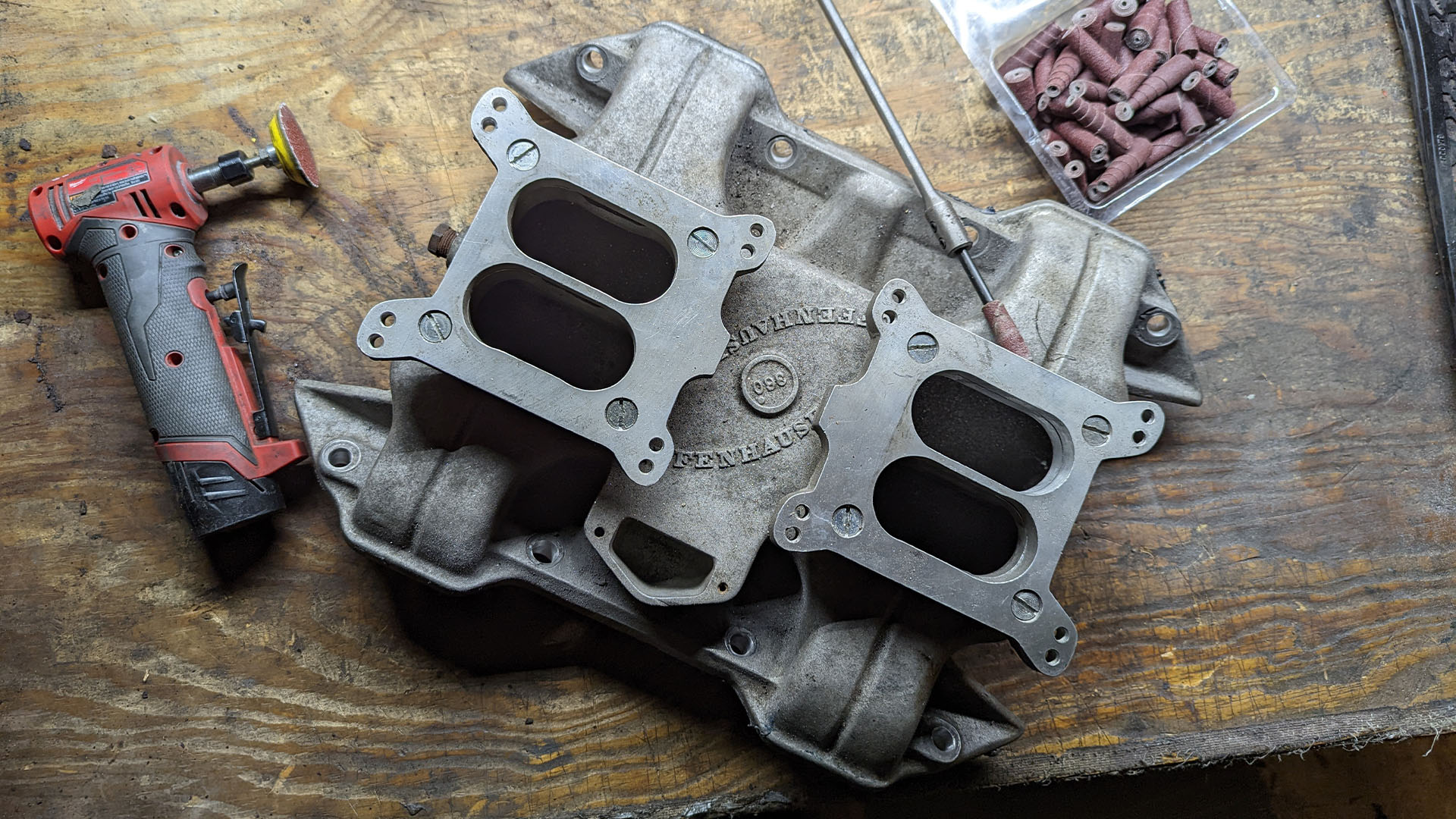 Removing the manifold unveiled three issues to address, the biggest of which was a hulking lump in the casting I found on the driver’s side of the intake. Clearly a reason for the imbalance of fuel mixtures I’d seen.