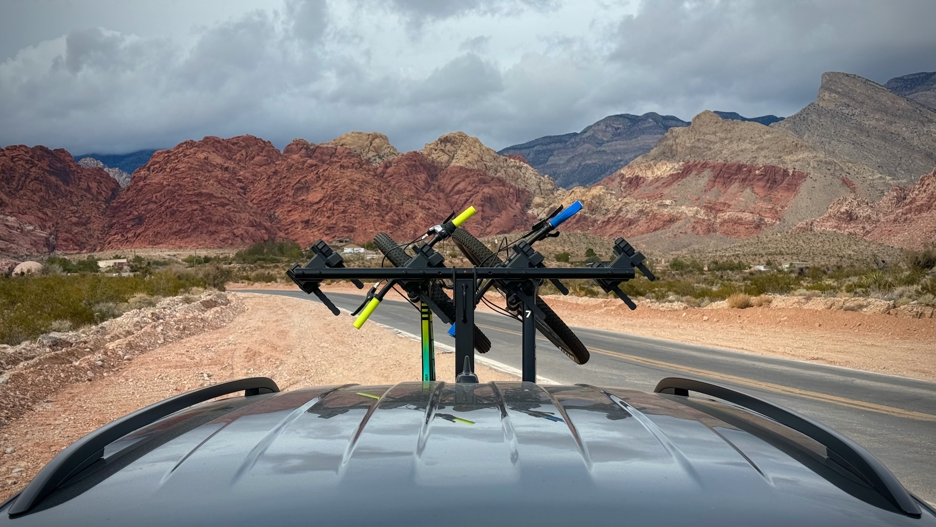 The HangTight works with flat-bar and drop-bar bikes, but it seems to work best with flat-bar mountain bikes. If you want to carry drop-bar bikes, like gravel or road bikes, you have to space out the cradles so you will only be able to carry three bikes. If you have downhill bikes with dual-crown forks, you will need to buy different cradles, but if you have flatbar bikes that are under 38 pounds, with tires under five inches wide, you are good to go. If you’re unsure if you have a gravel, road, or downhill bike, there’s a 99.9% chance you don’t as these are something you buy on purpose.