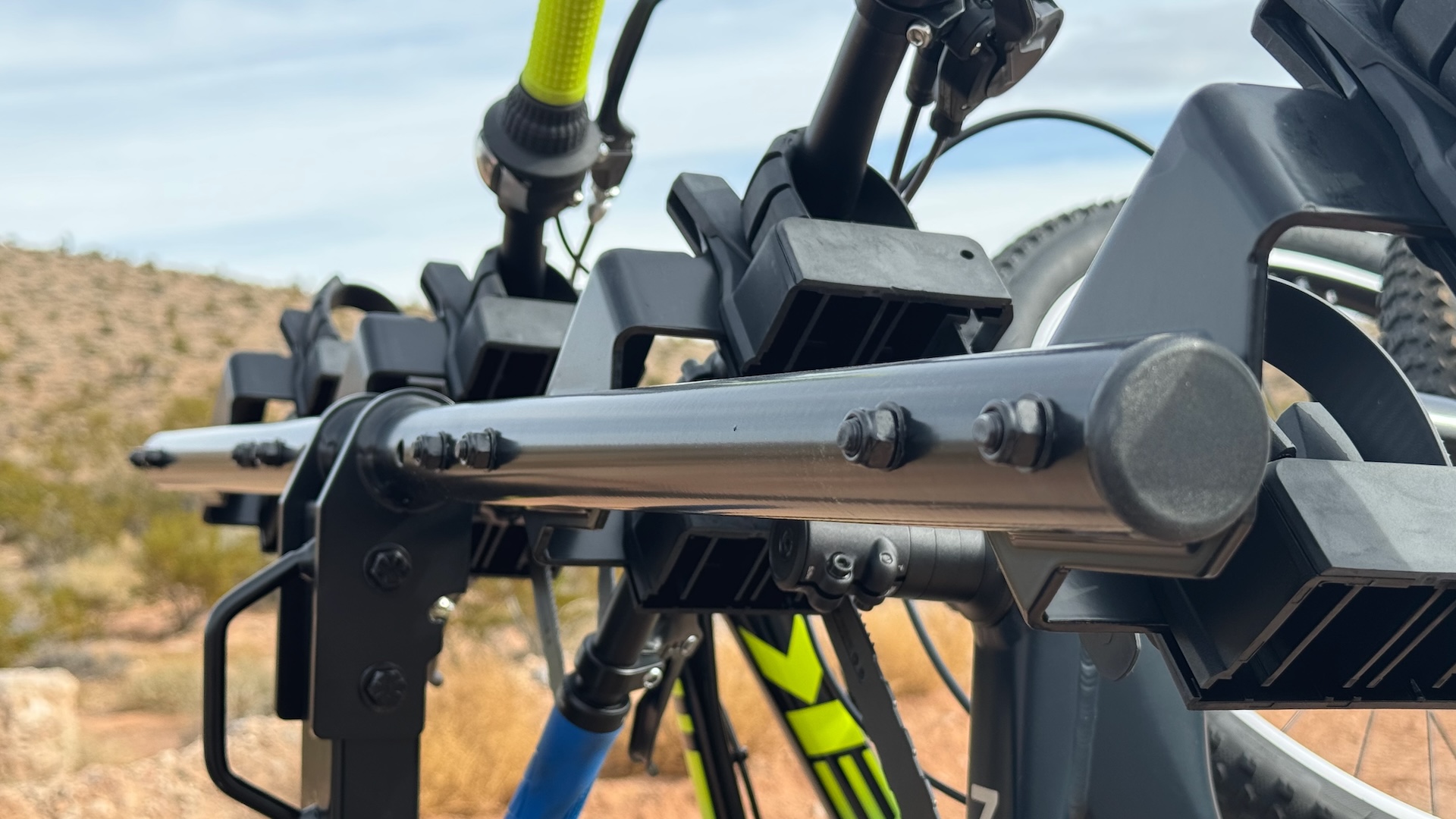 My SUV has a two-inch hitch receiver, so the Yakima HangTight 4 works without an adapter; they are available if you have a different size hitch. It slides into the receiver and then uses a hitch pin that threads into the shank (that’s the part of the rack that slides into the hitch receiver) and after it’s torqued, a keyed cap is locked on the end of the pin. I have full confidence that the rack will stay on the car, even more so than some of the roof racks I’ve had in the past. It does seem like a bit of an inconvenience to pull out the torque wrench every time I want to put the rack on the car.