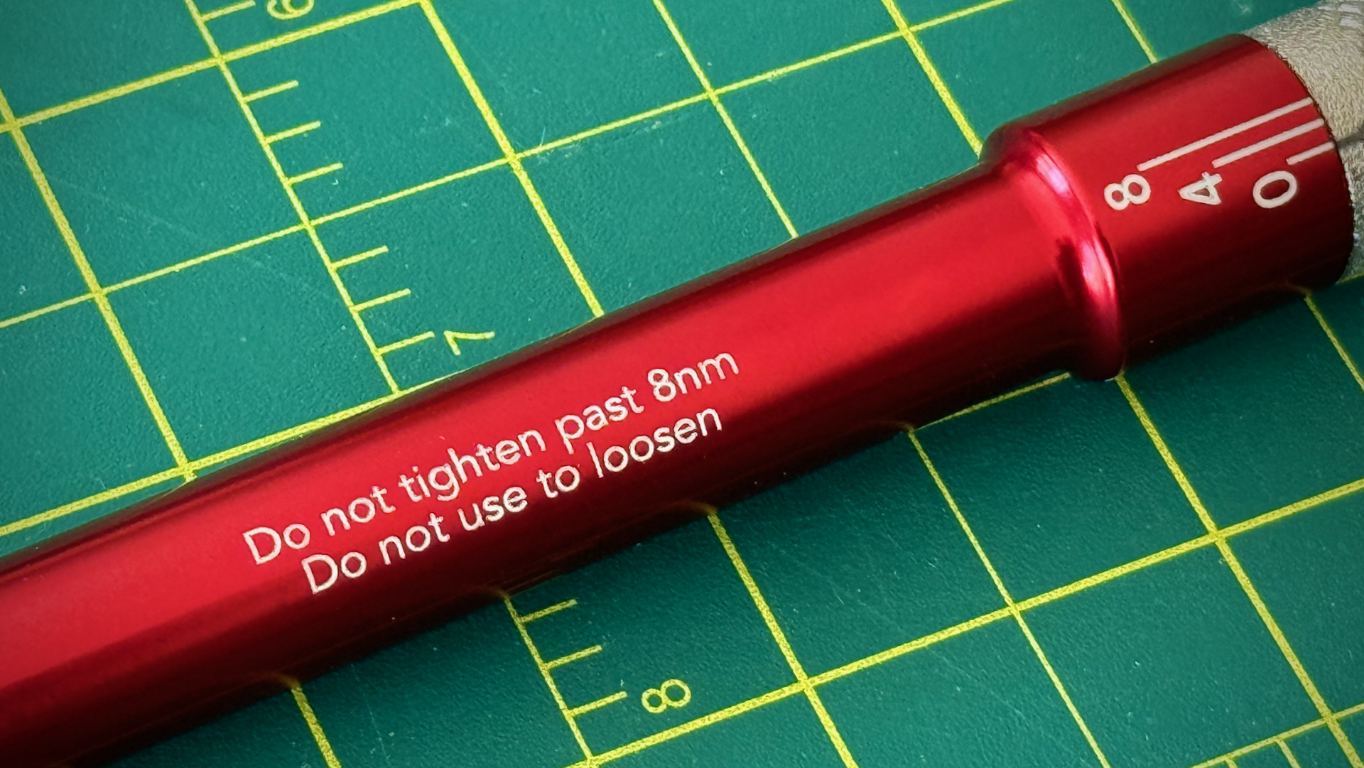I own four torque wrenches and a few torque adapters. The minimum torque spec I can do with lowest rated torque wrench is 10 lb-ft, which is 13.6 Newton-meters. Most of the bicycle fasteners you would touch on a ride are between 3 – 6 Newton-meters. I’ll be honest, my first thought is, why do I need a tool to do these really low torques? Then, I think, if the torque is that low, the odds of my reefing on that thing until I hear a pop is very high. But, how does it work? There is a calibrated beam in the center of tube. As you torque it, the tube moves in relation to end of the tube with the tool holder. You can see the arrow move on the scale. Now, like other beam-style torque devices, there is no click, beep, or chirp. You have to watch the gauge.