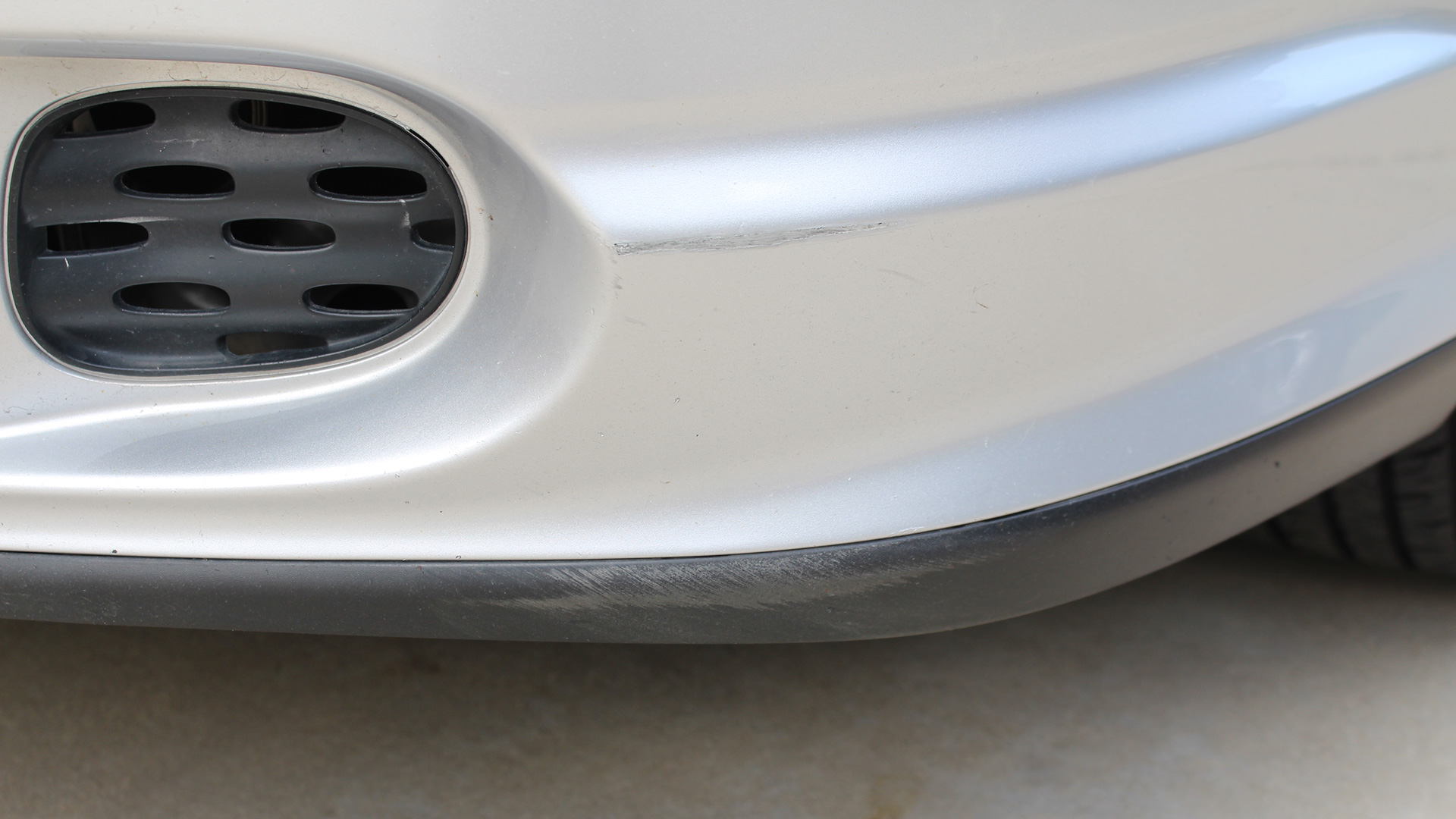 Only a couple of months into my stay at the new place, I was reversing to get out of my spot when I flubbed it. I assumed I was clear of the post, so I began cranking the wheel and turned my head to keep an eye on the Honda Fit behind me. I was so focused on not hitting the car, however, that I scraped the driver’s side corner of my front bumper on the corner of the concrete pillar. I stopped immediately, but it was too late. A spotty thin black line now marred the front of my car. I nearly puked in agony. I made a stupid mistake, and my car’s paint paid for it.