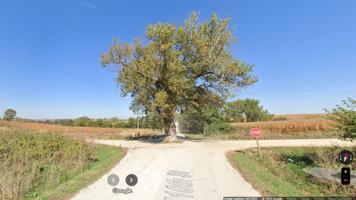 Intersection With a Huge Tree in the Middle Is How Rural Iowa Does Roundabouts