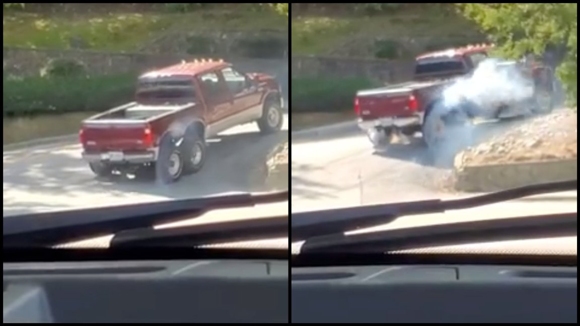 Six-Wheeled Ford Super Duty With Massive Lift Kit Can’t Even Conquer Paved Hill