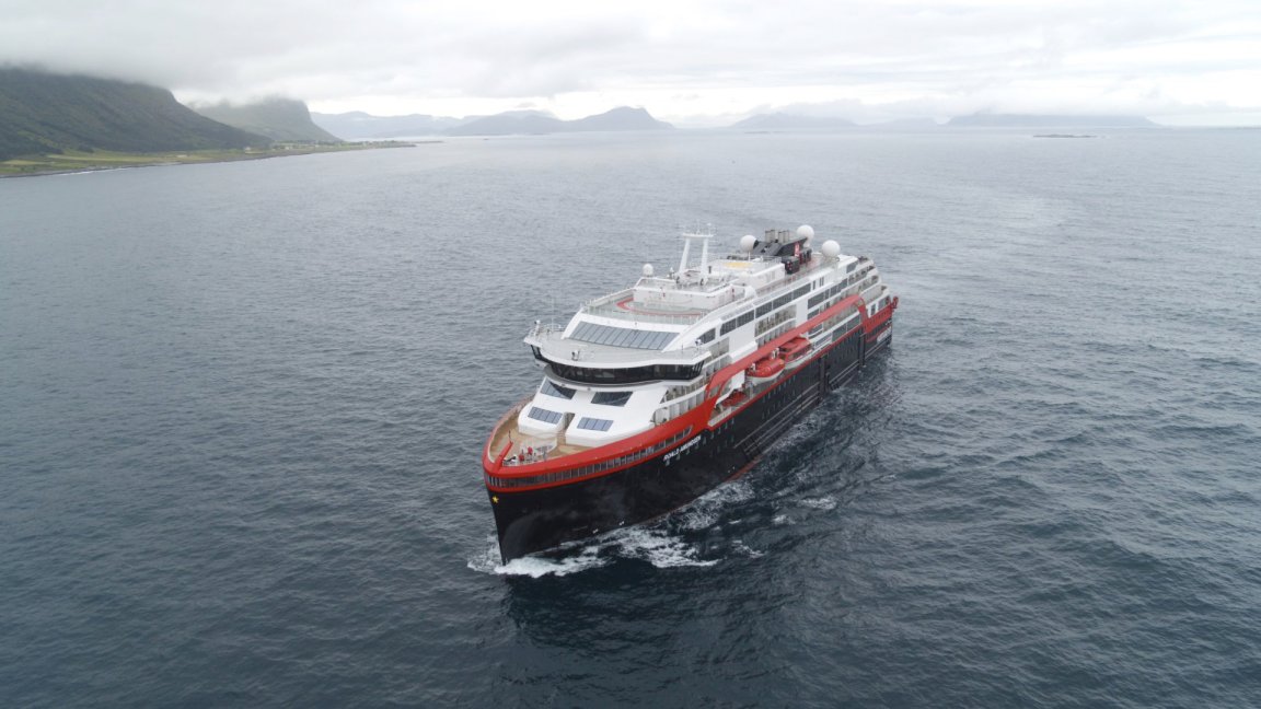 The Roald Amundsen is the first cruise ship propelled by some sort of electric power and will sail from Norway to Alaska and eventually Antarctica.