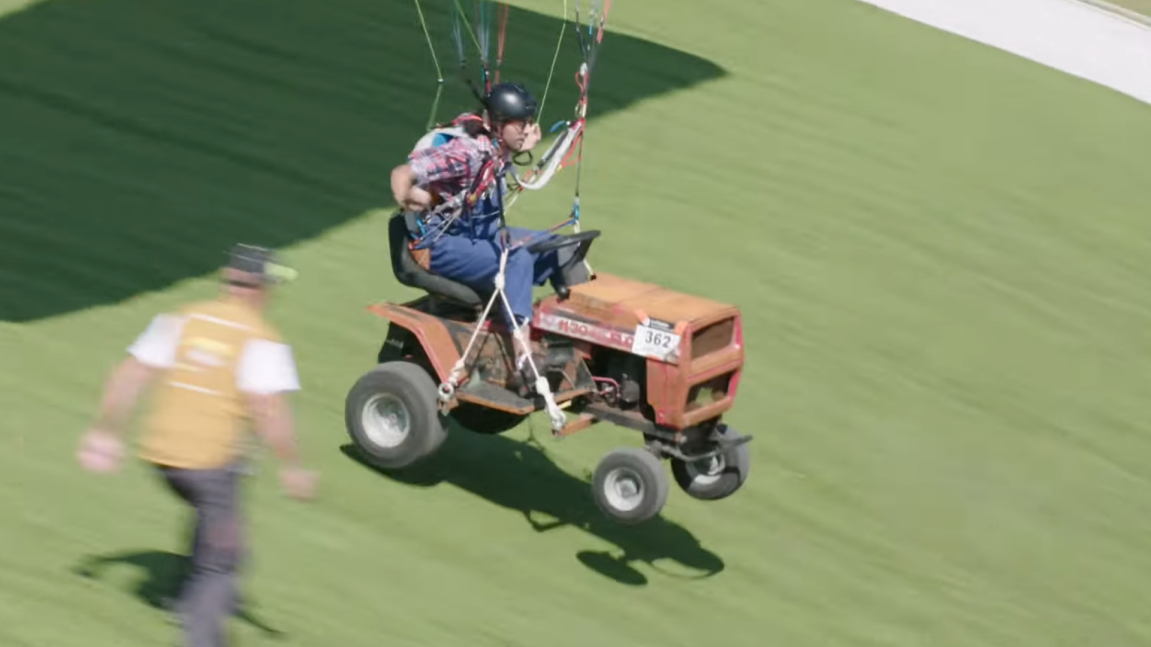 Watch a Very Brave Man Fly a Lawn Tractor High Above the Alps