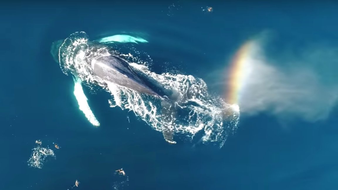 Watch This Humpback Whale Create a Rainbow as It Dives Through a School of Fish
