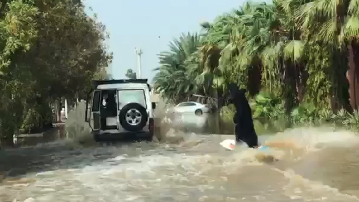 Watch This Saudi Woman Wakeboard Behind a Truck Down a Flooded Street