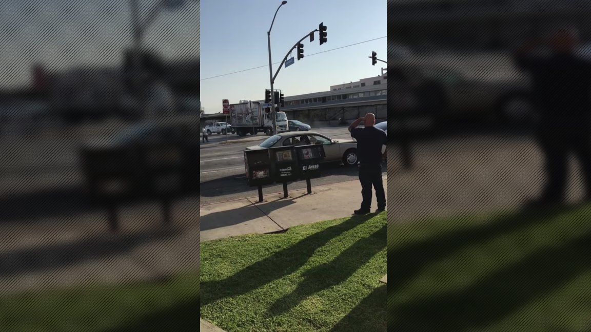 After repeatedly striking cars and nearly revving his car to death, the man's car was found set ablaze.