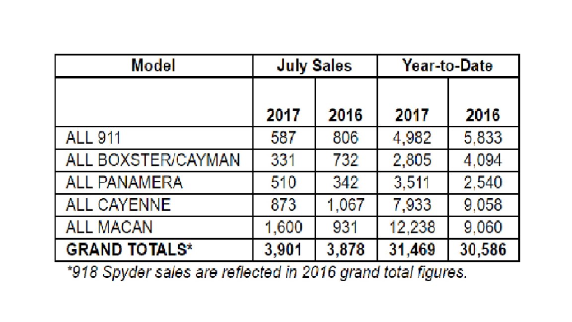 July 2017 sales report shows an increase of just 0.6% over July of 2016, almost exclusively led by Macan.