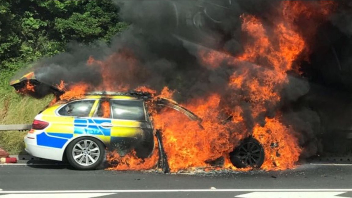 BMW Police Car Explodes into Flames for Unknown Reason