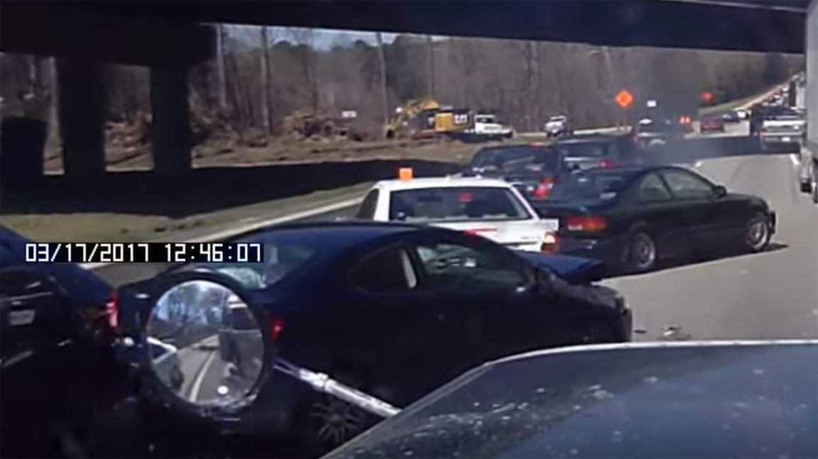 Watch Tailgating Drivers Cause a Giant Crash