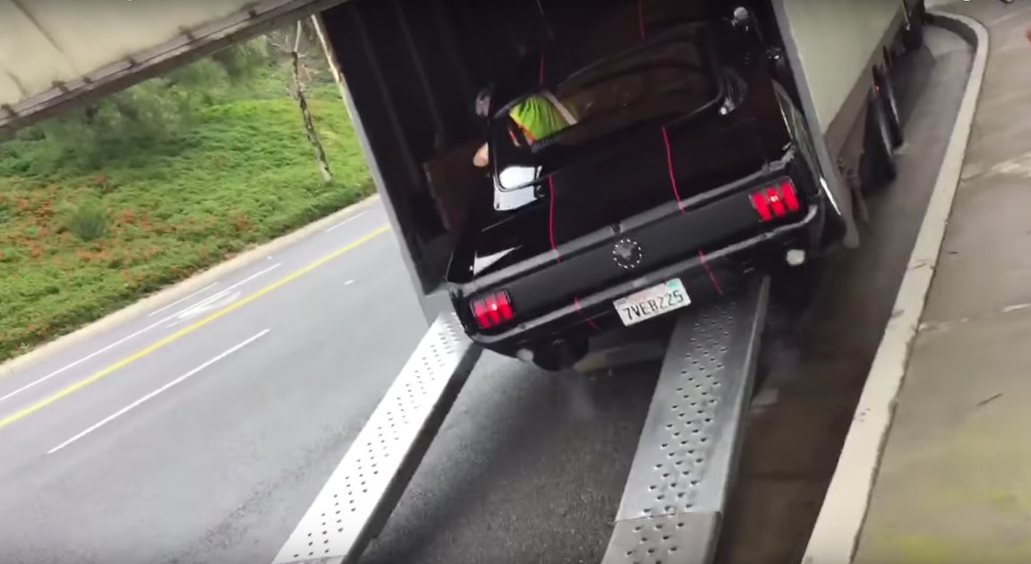 Watch This Classic 1965 Ford Mustang Crash Its Way Onto a Trailer