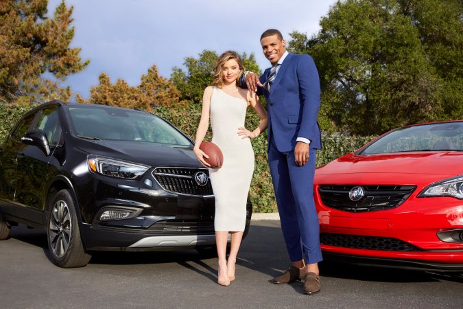 The NFL star and the supermodel star alongside the Cascada and the Encore in Buick's ad for Super Bowl LI.
