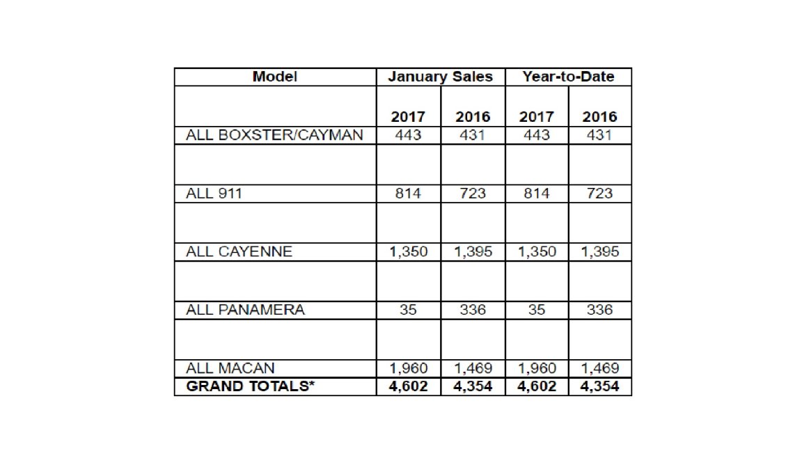 PCNA Shows an increase over January 2016, driven mostly by the Porsche Macan