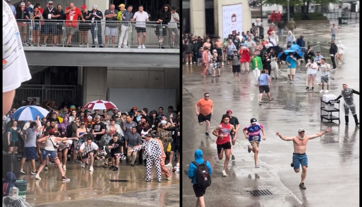 Shirtless dudes, an all-women race, and even some children—fans made their own racing when thunderstorms brought the 500 to a halt.