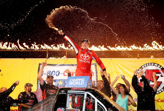 For the second straight race, driver must clean confetti from uniform.