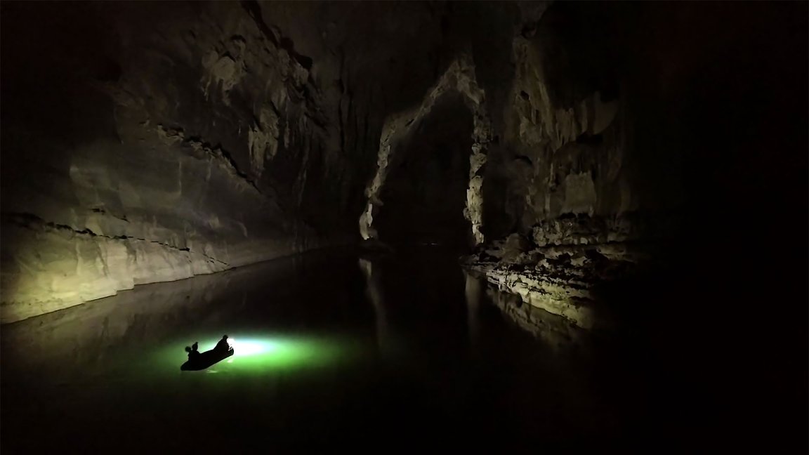 Video Drone Goes Inside Tham Khoun Xe River Cave