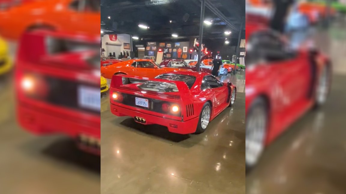A Ferrari F40 getting parked at an automotive museum has an unfortunate encounter with a pole.