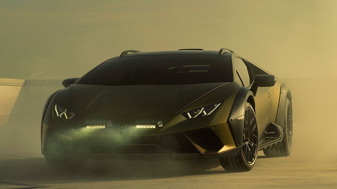 A mid-engine V10 Lamborghini with all-terrain tires and a lifted right height? Where do I sign?