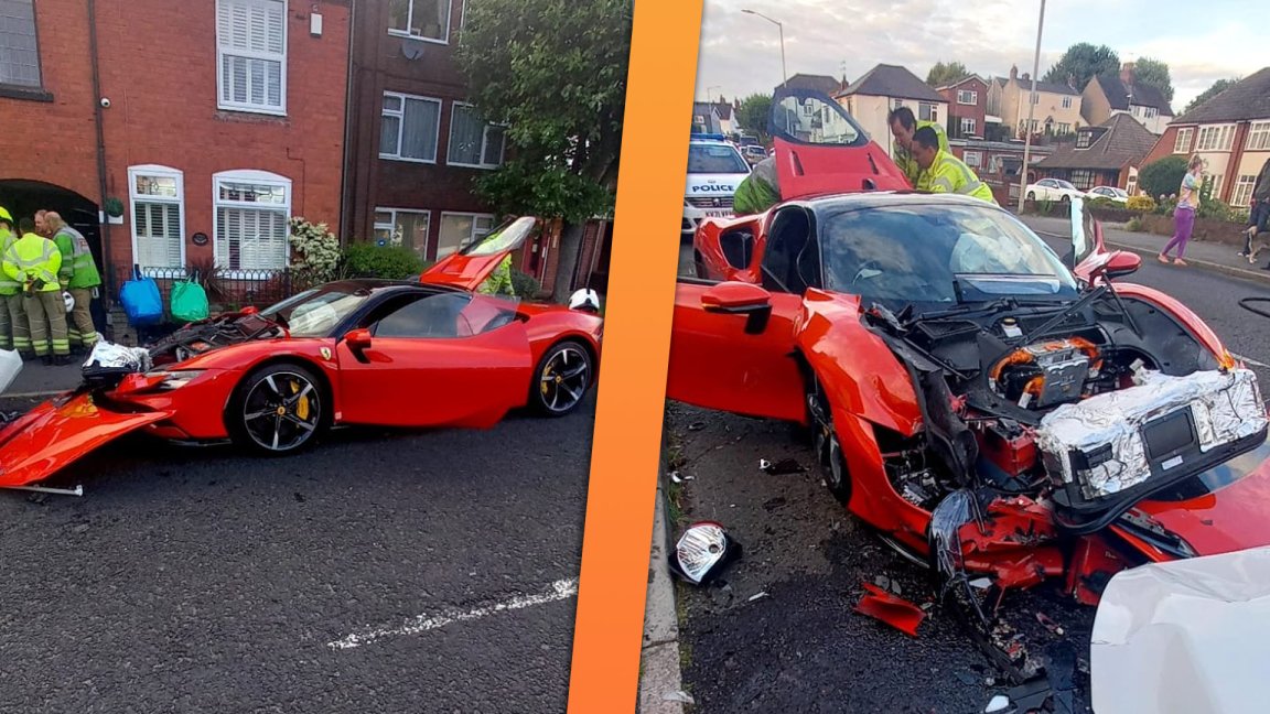 Watch a Ferrari SF90 Driver Crash Into Five Parked Cars, Run Away