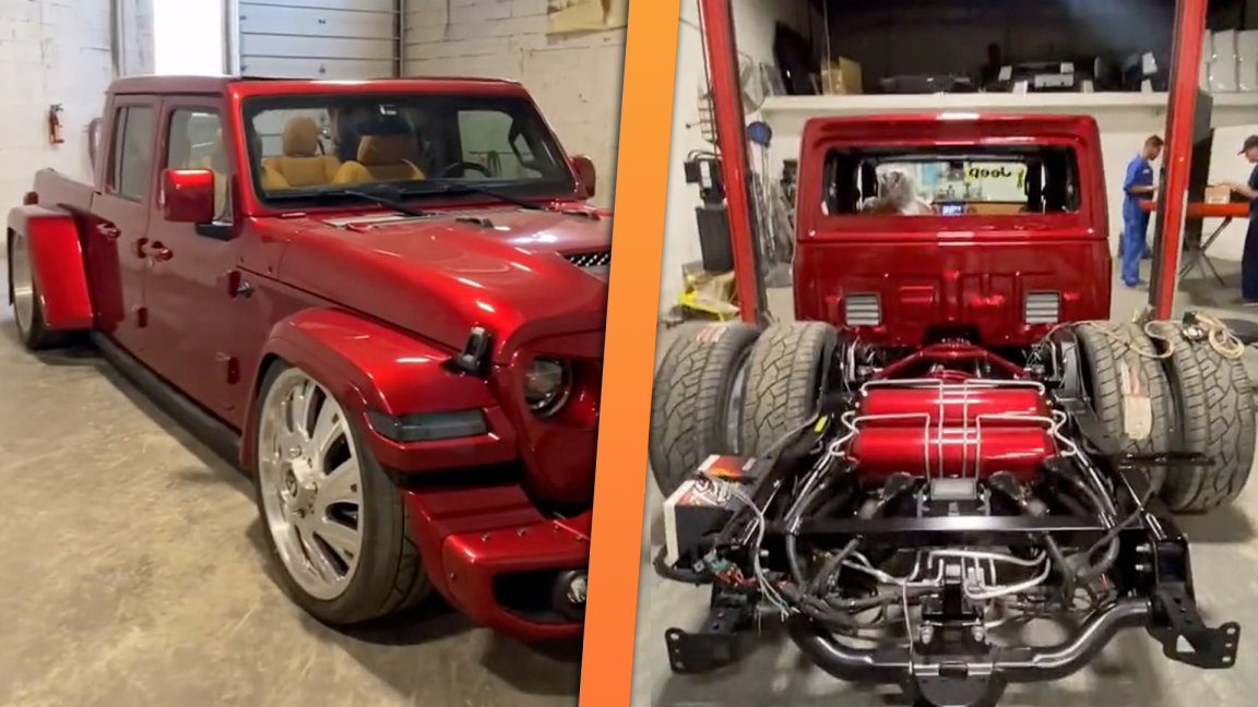 The shop modified a Ram 3500 rear axle and had to custom-fab an independent front suspension setup.