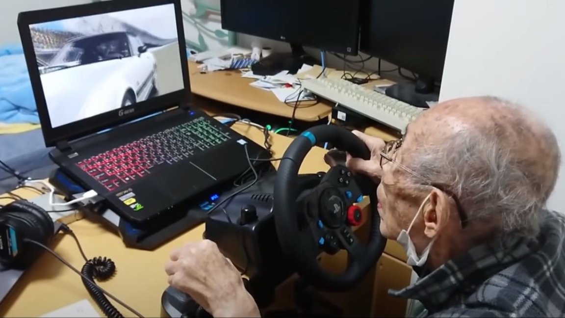 This happy nonagenarian has discovered the fountain of youth: driving virtual cars.