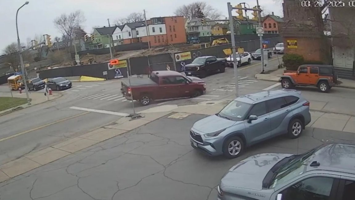 The ground apparently collapsed in a busy city intersection just minutes before a pickup turned the corner.
