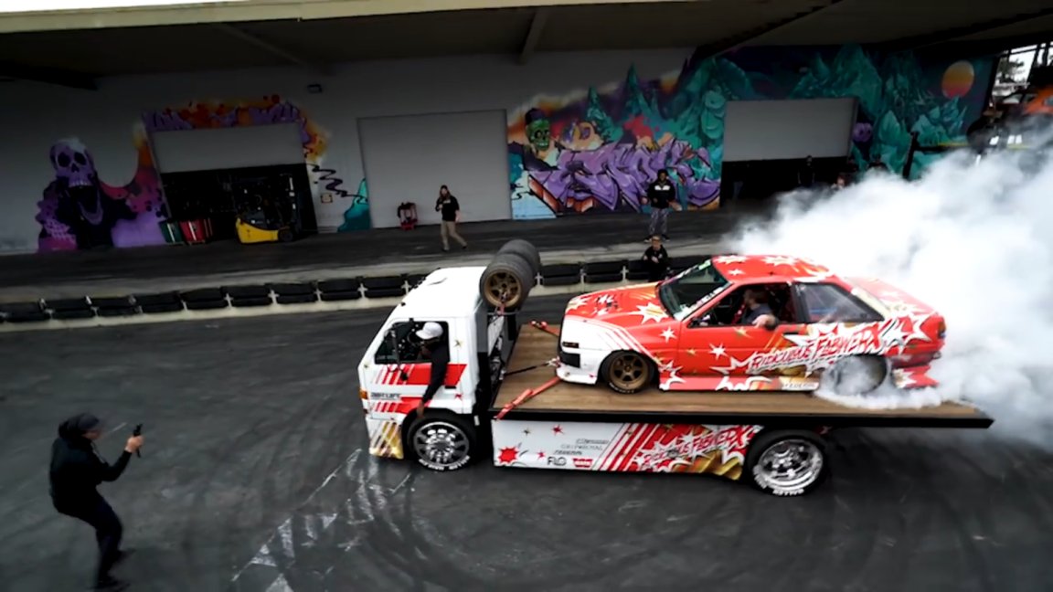 AE86 Toyota Corolla Does Burnout on Its Matching Baller Hauler