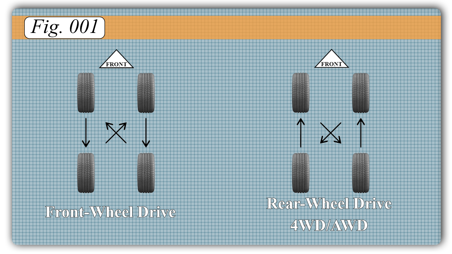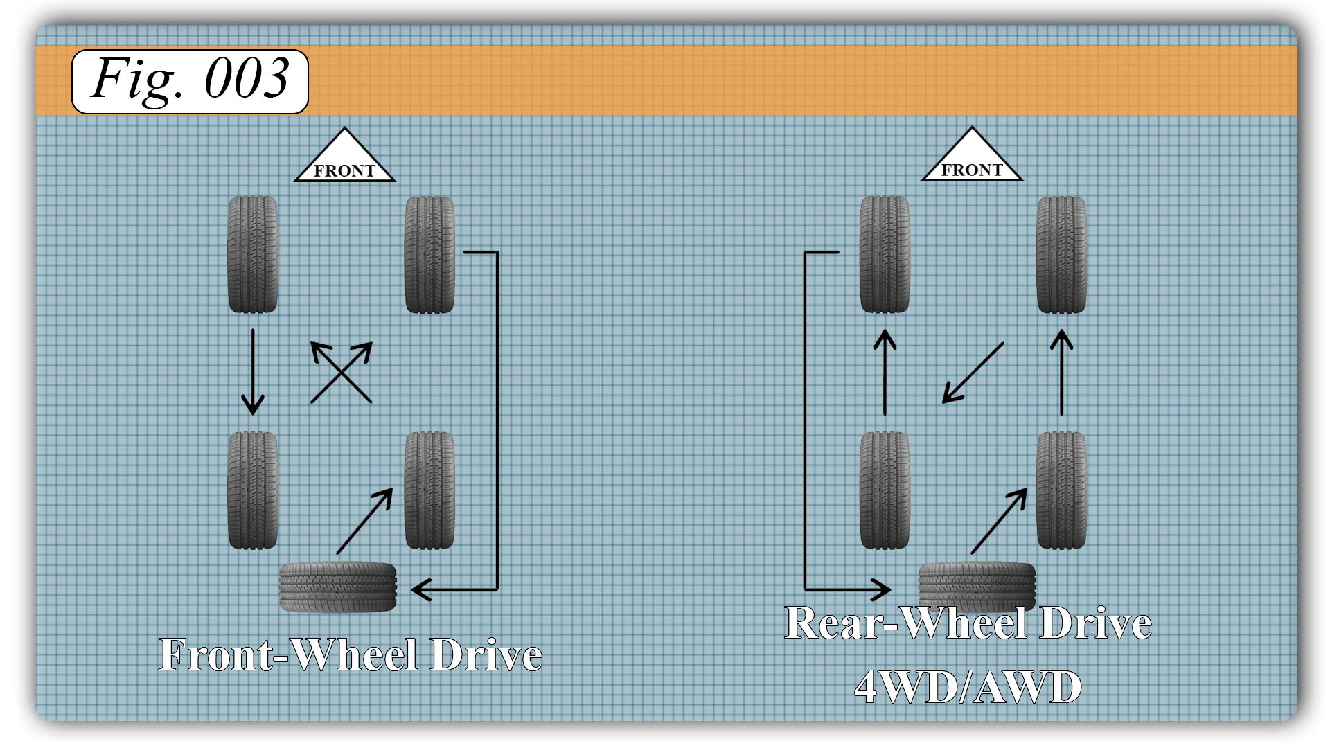 - Generally, if the car is front-wheel drive, the fronts will wear faster. Therefore, swap the front tires straight back, and then move the driver-rear to the passenger front, and the passenger-rear to the driver front.