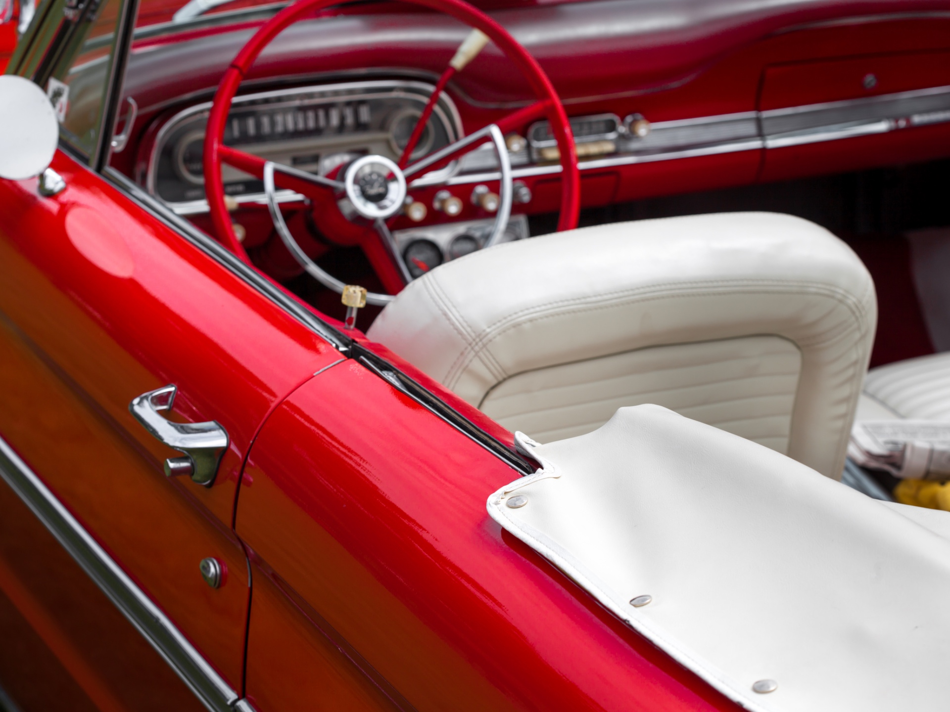 Vinyl is made out of plastics and other materials and is frequently used as vehicle upholstery. Vinyl is upholstery, but not all upholstery is vinyl. Got it? Vinyl rose to popularity in the 1950s as plastics technology improved and has evolved into a material that today is better in some ways than real leather. It’s easy to clean and durable but does not perform as well as natural materials in hot temperatures, as it tends to feel sticky and uncomfortable.