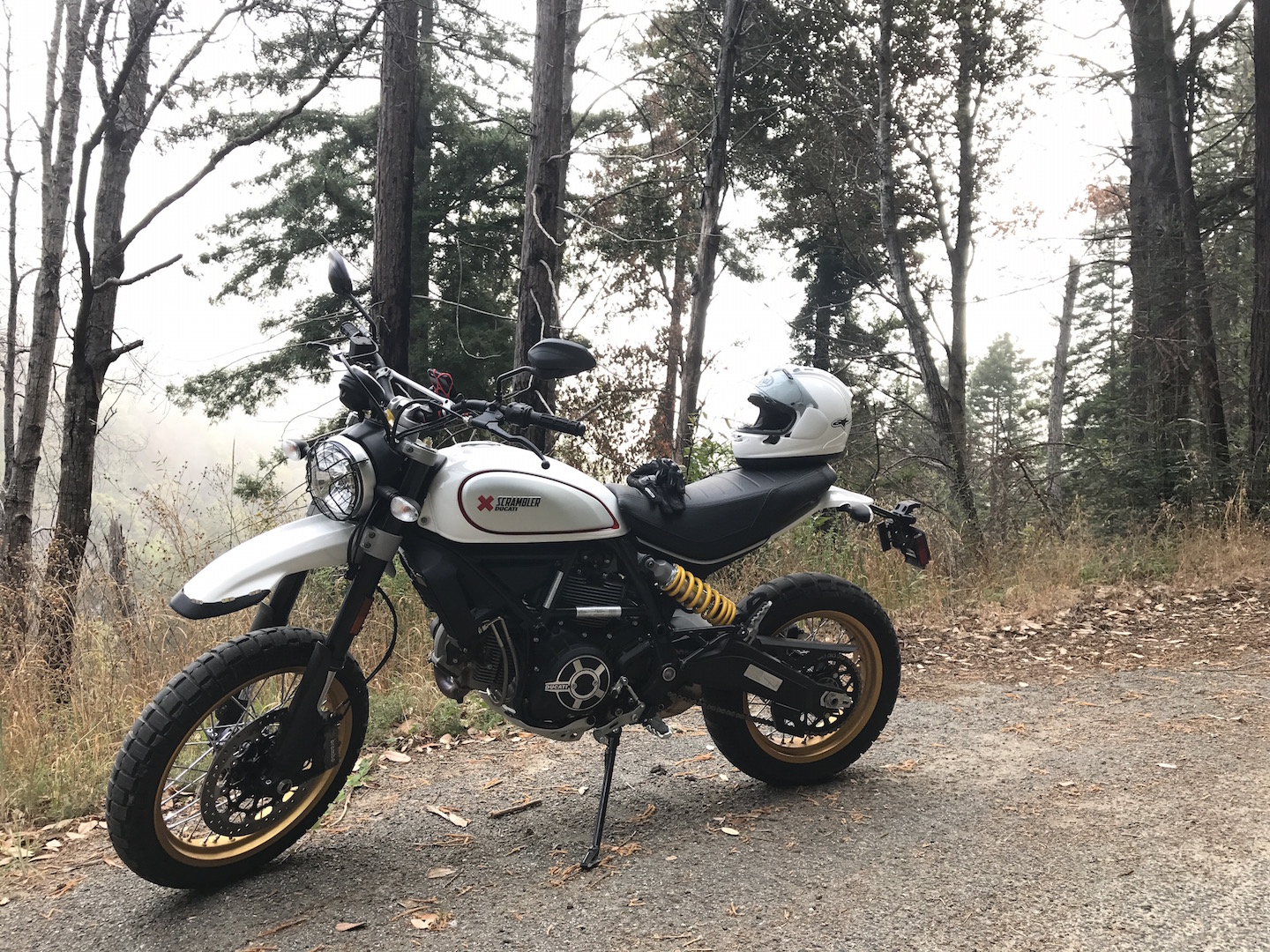 So I started looking for a place in Monterey to go offroading. The day after I landed, I was standing in line at a CVS in Carmel when I met a firefighter who was behind me with a shopping cart full of bottled water. He looked at the motorcycle helmet in my hand—an Arai Corsair X.