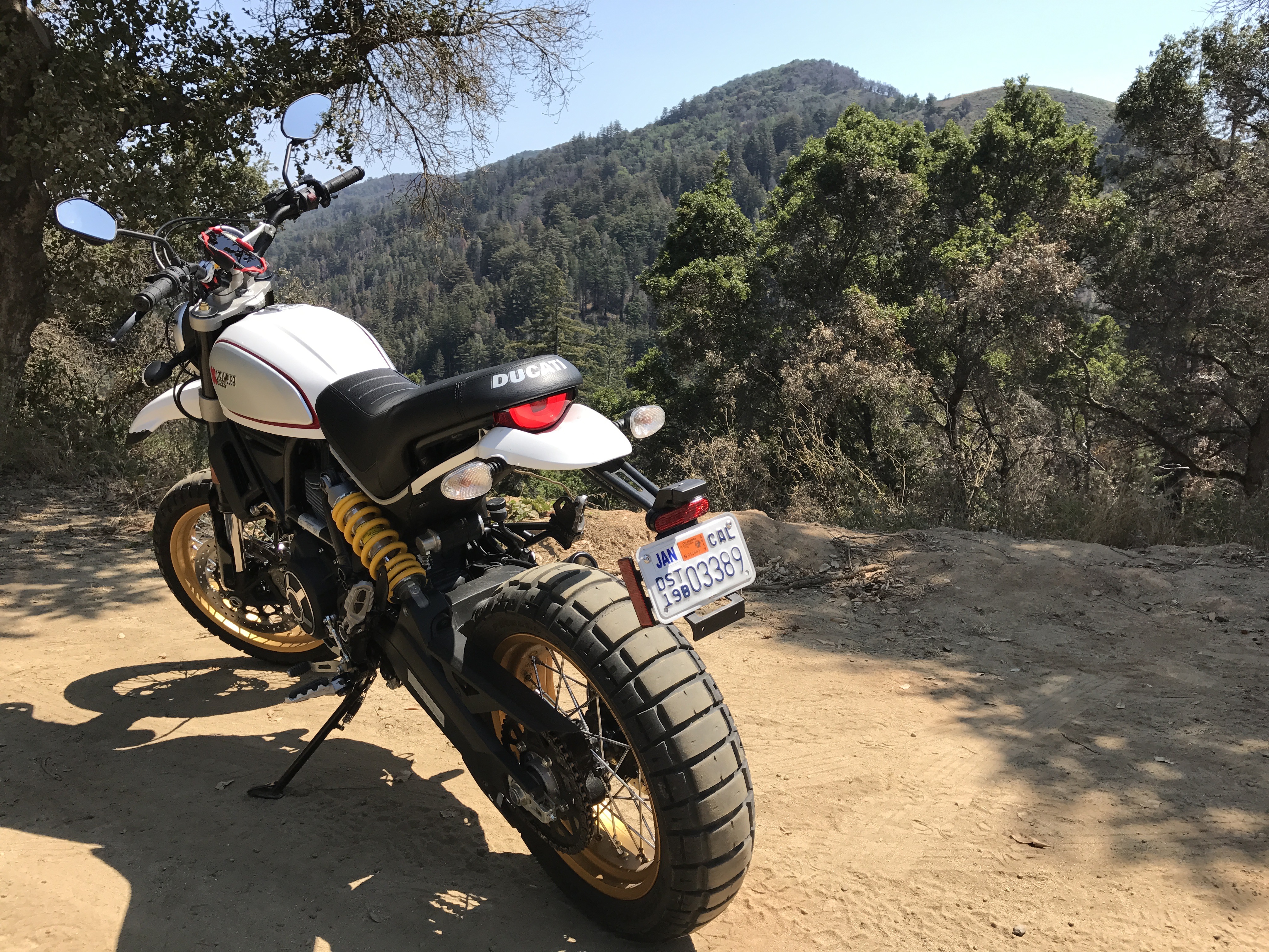 As I enter that beatific trance state that only a long offroad ride through a place like Big Sur can create, the true capabilities of the Ducati become clear. This is not a dilettante’s dual sport. It’s not top heavy or leaden. It is lithe and quick on the tough stuff, perfectly balanced, with its higher handle bars and a seat height around 34 inches. Despite the weight—the revised frame and offroad components add up to 456 pounds—I’m never bogged down or uncertain.
