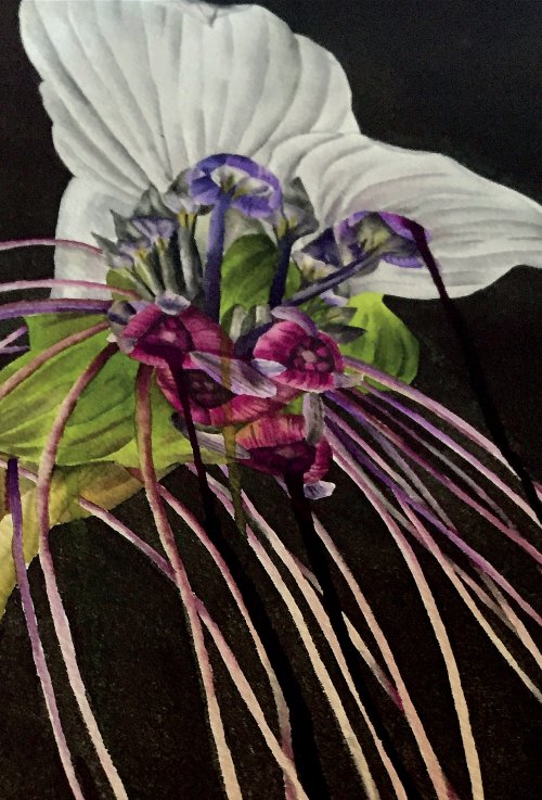 “One of my main subject matters are flowers,” Gervacio explains in a press release. “I often look at them or pose them to represent people, considering the parallel of postures, body language, etc.” The Demon Flower design he created is based on an exotic plant called the Tacca Chantrieri also known as the “black bat flower” due to its shape and black flowers. It’s native to tropical regions of Southeast Asia.