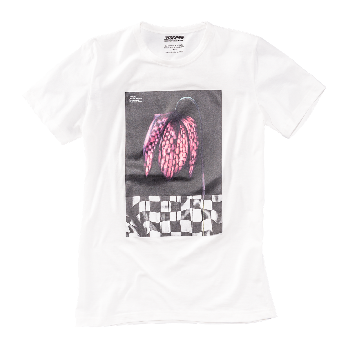 Gervacio said he had, “never seen such a flower before, almost seeming like they could have come from another planet. Of course, I was intrigued to paint such an eerily beautiful plant and include it into my language for the Dainese Settantadue collaboration.”