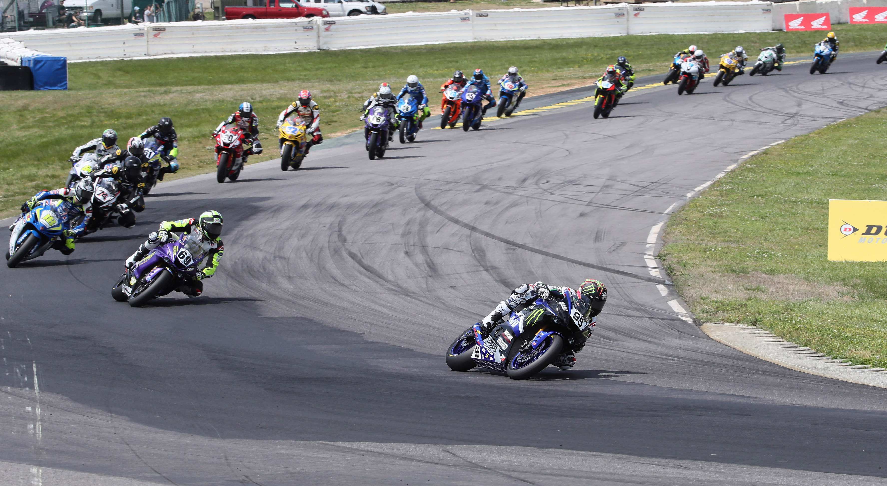 JD Beach led the MotoAmerica Supersport race from beginning to end, winning with a dominating 28 seconds between himself and the second place finisher, at Virginia International Raceway. Beach is a seasoned flat track racer and a road racer; a combination that might be his not-so-secret weapon. This win was ultimately decided when Hayden Gillim crashed out of second place during the race.