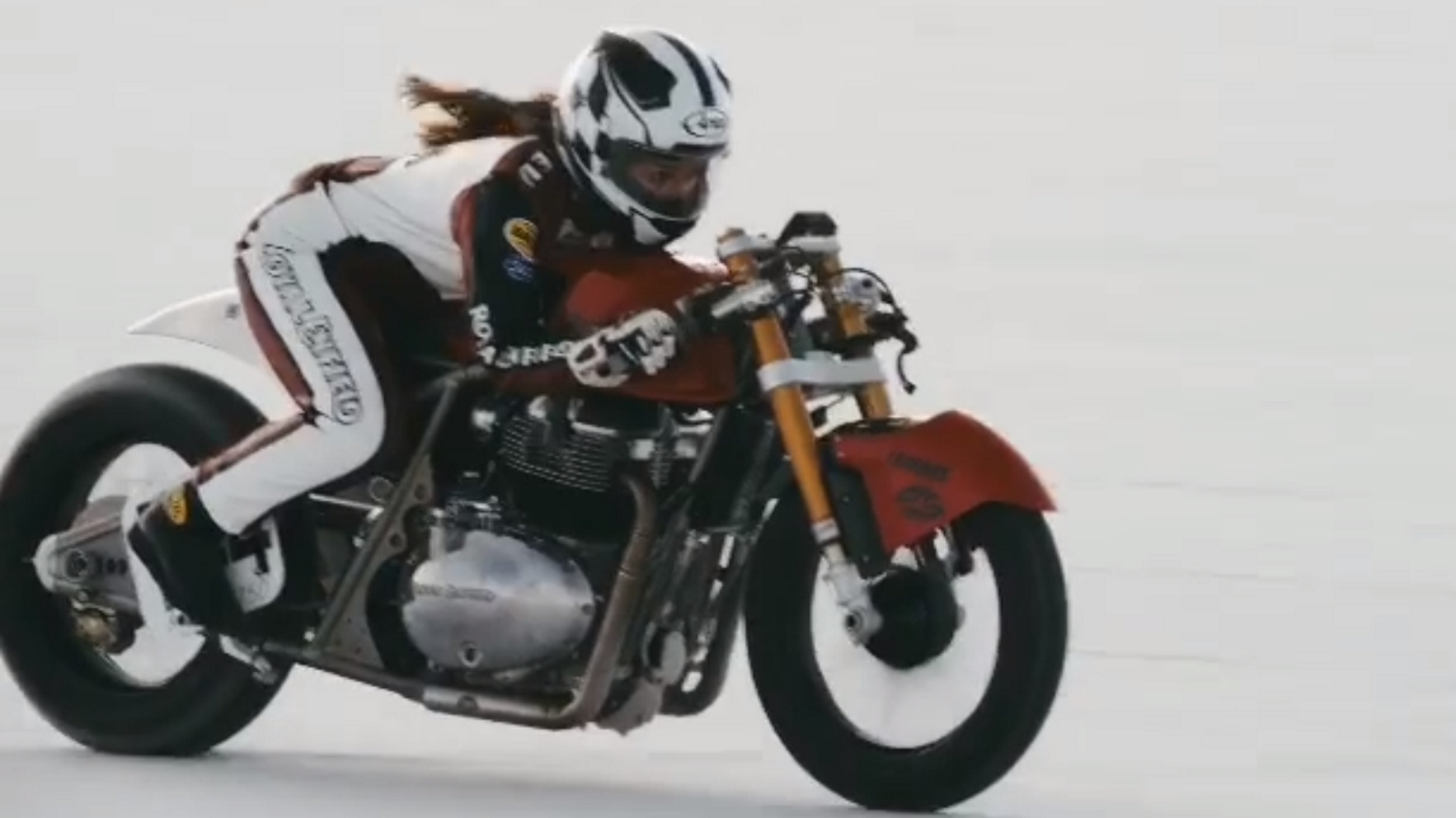 As the world prepares for the first twin-cylinder Royal Enfield motorcycles to hit the market since 1970, a heavily modified version of a Continental GT 650 ridden by the talented Cayla Rivas just hit a speed record at the Bonneville Salt Flats.