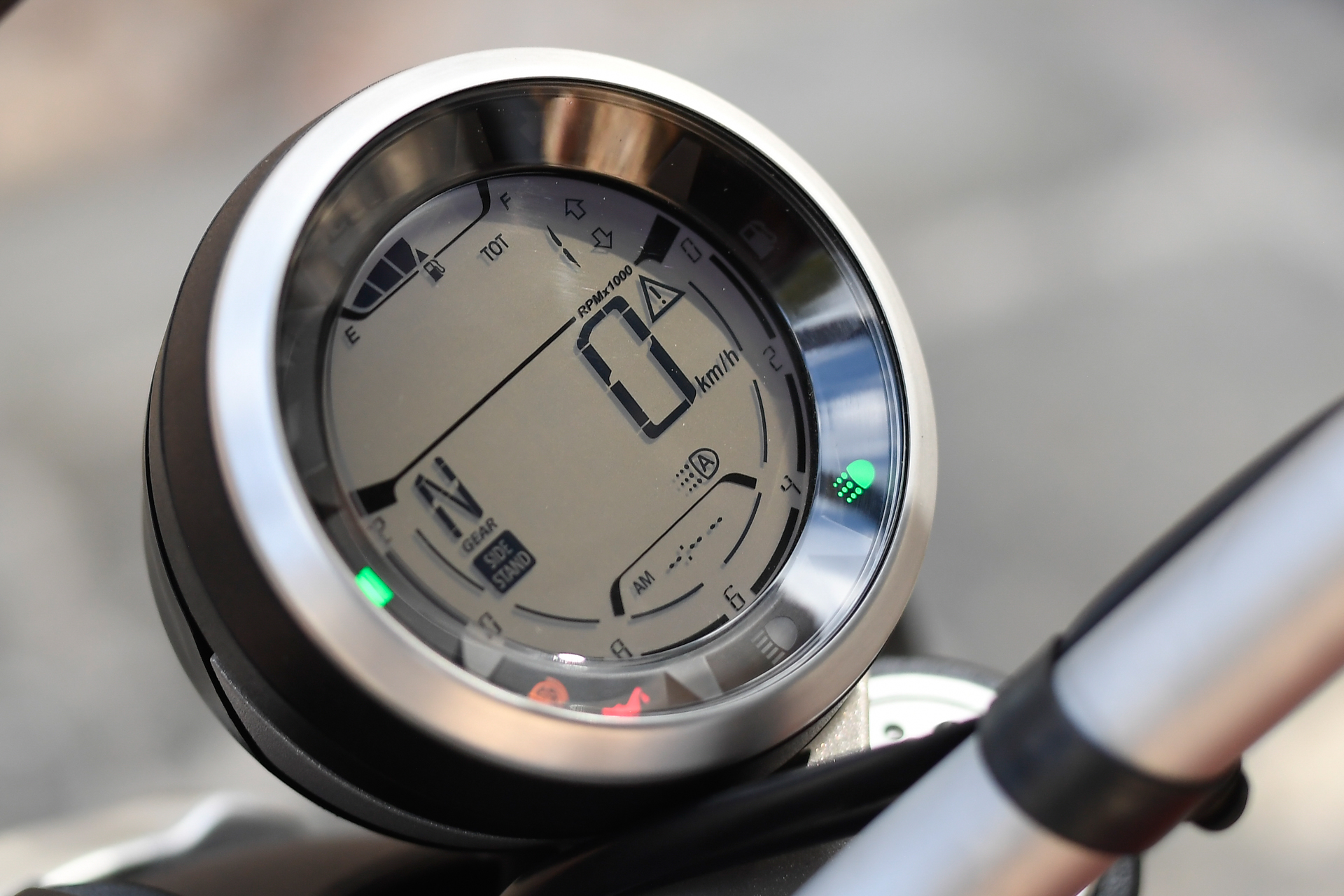 The menu switches for the LCD instrument panel are the same ones found on the Scrambler 1100 and make it easier for the rider to scroll the LCD instrument menu. However, with no ride modes or traction control, it’s only used to move through the basic menu which now includes a fuel gauge and gear shift indicator. Sadly, that reverse tachometer still exists.