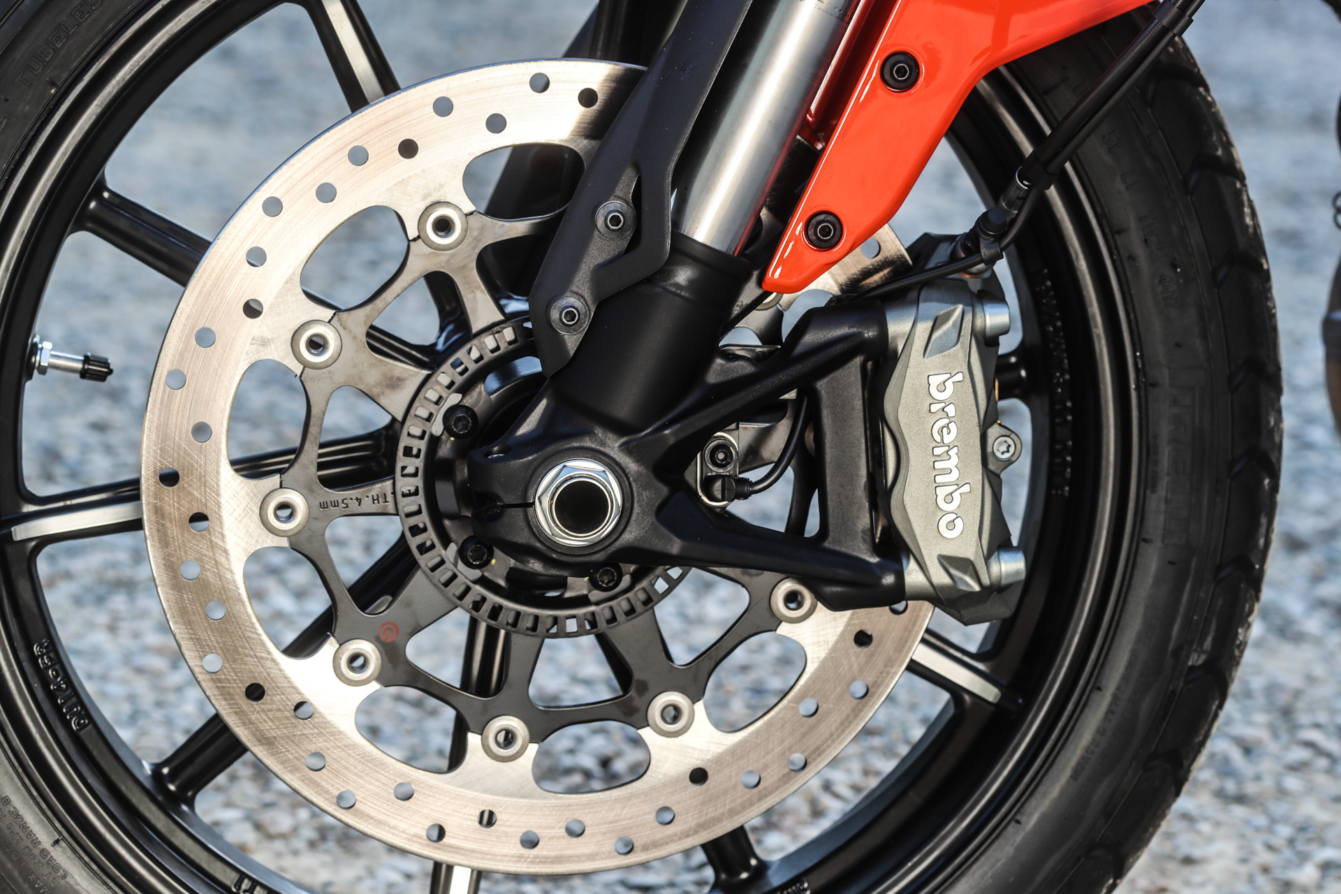 Braking comes courtesy of Brembo, with a 4-piston M.4.32 radially mounted monobloc up front chomping down on a 330mm single disc and a 34mm single piston on a 245mm disc in the rear. At causal speeds, brake feel is perfectly acceptable but once you get the bike moving with aggressive intent, they begin to feel a bit wooden under hard application.
