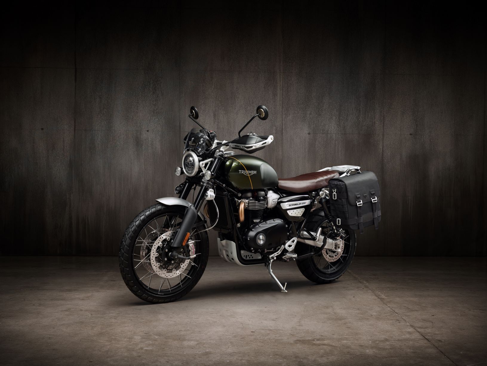 Like with the new Street Twin, the new Scrambler 1200 is available with two “inspiration kits” which are basically pre-packaged sets of accessories you can add to your bike. One is called “Escape” and has an adventure touring theme adding a pannier and fitting kit, a grab rack kit, LED fog lamps, a center stand, and a flyscreen. The other is called “Extreme” and makes the Scrambler a more aggressive off-roader by adding an Arrow carbon silencer, an aluminum radiator guard, a high front mudguard, a black handlebar brace, a headlight grille and bezel, and more.