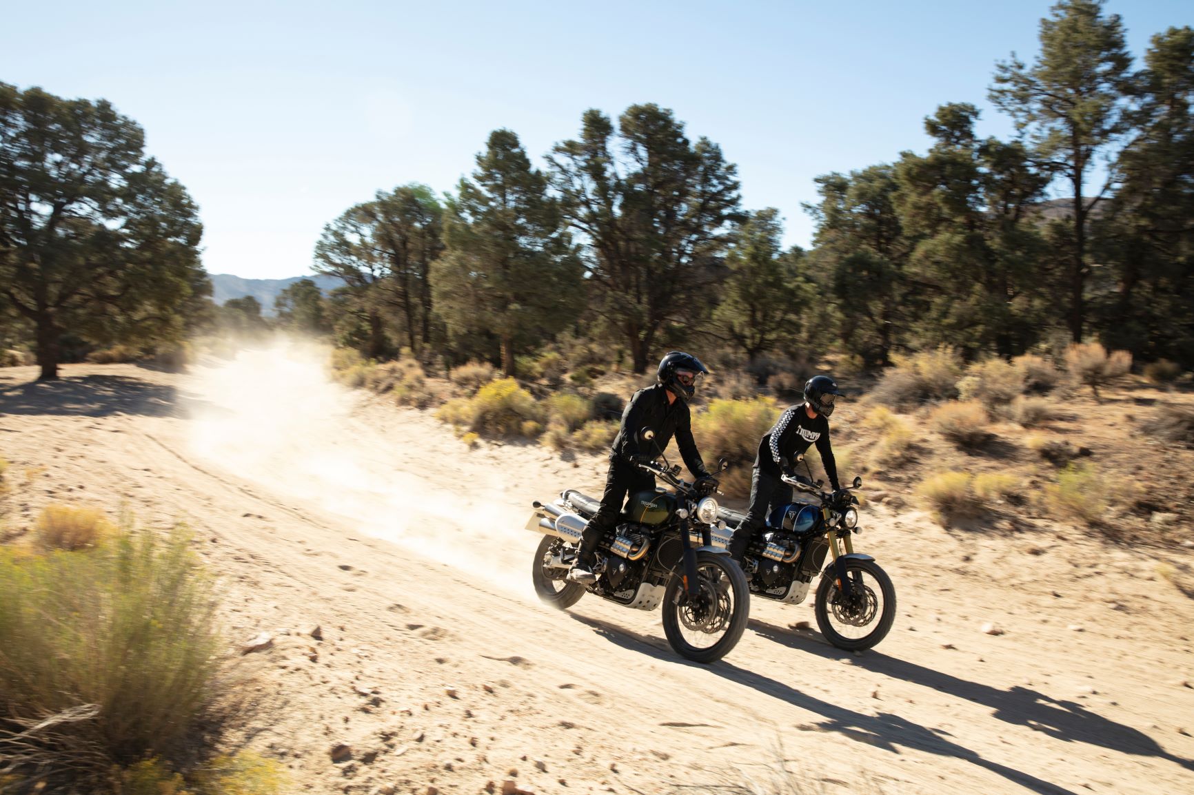 There’s also a lot of standard tech on every Scrambler 1200 that you might be surprised to find on such a simple-looking bike. It’s ride-by-wire with ABS and switchable traction control. There are five riding modes; Road, Rain, Sport, Off-Road, and Rider-Configurable which you can customize in the Triumph app. As we mentioned earlier, the XE gets a sixth riding mode; Off-Road Pro. The difference between Off-Road and Off-Road Pro is that Off-Road Pro completely turns off ABS and traction control to maximize off-road fun. All-LED lighting, keyless ignition, USB charging, and cruise control round out the base package for both.