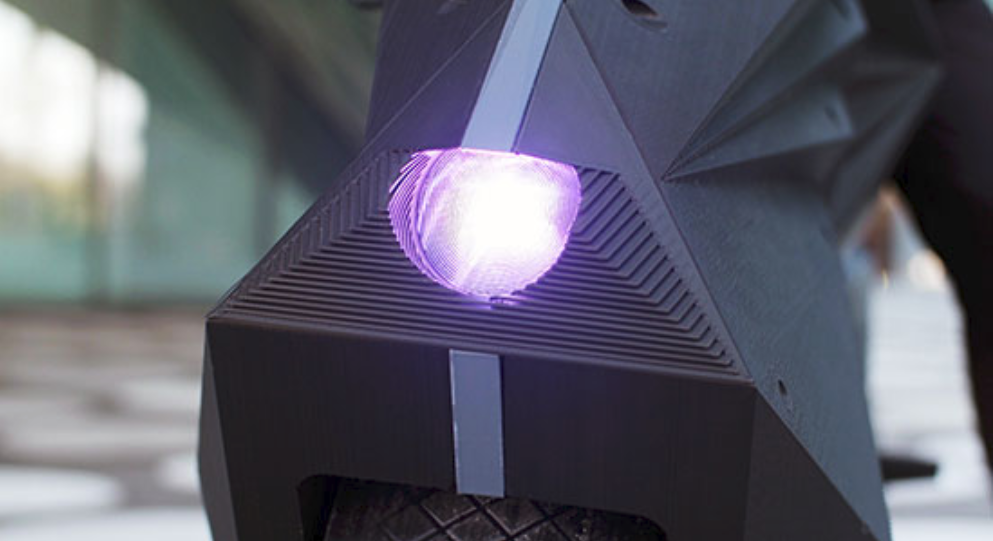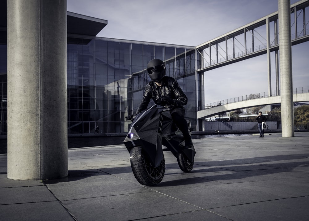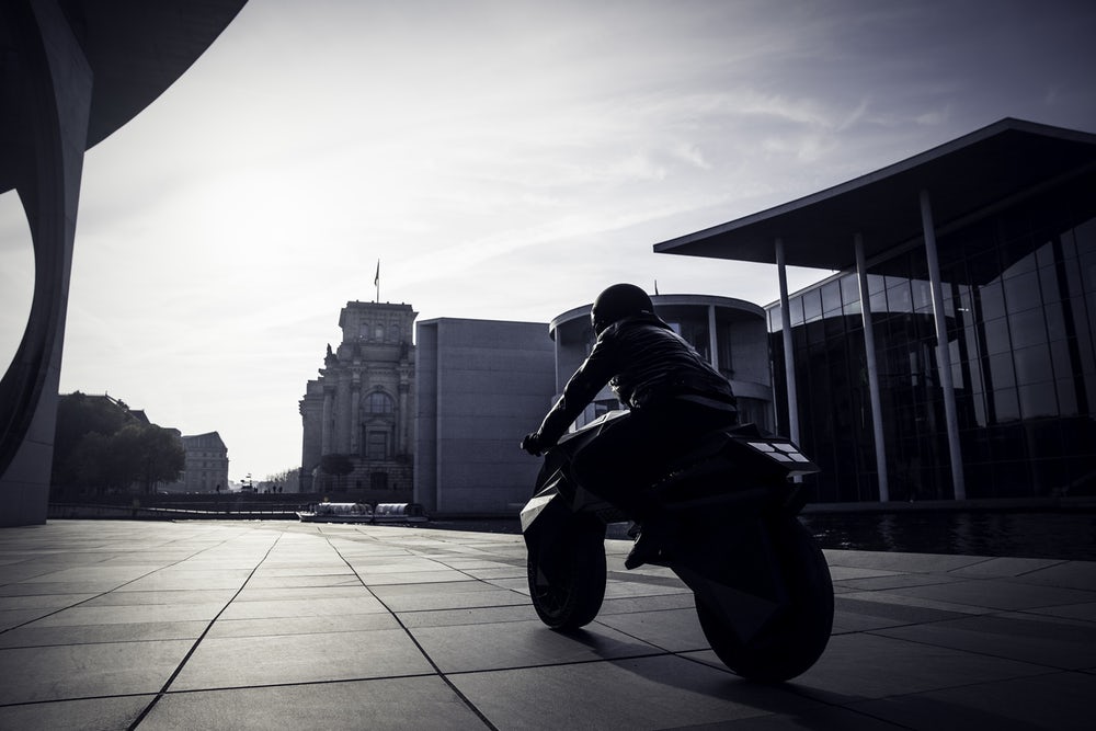 The futuristic design of this motorcycle isn’t quite like anything else we’ve seen. One of the first things you’ll notice is a big empty space where a motorcycle’s engine usually goes. There’s an electric motor hidden in the rear wheel and the batteries are embedded into its minimalist bodywork.