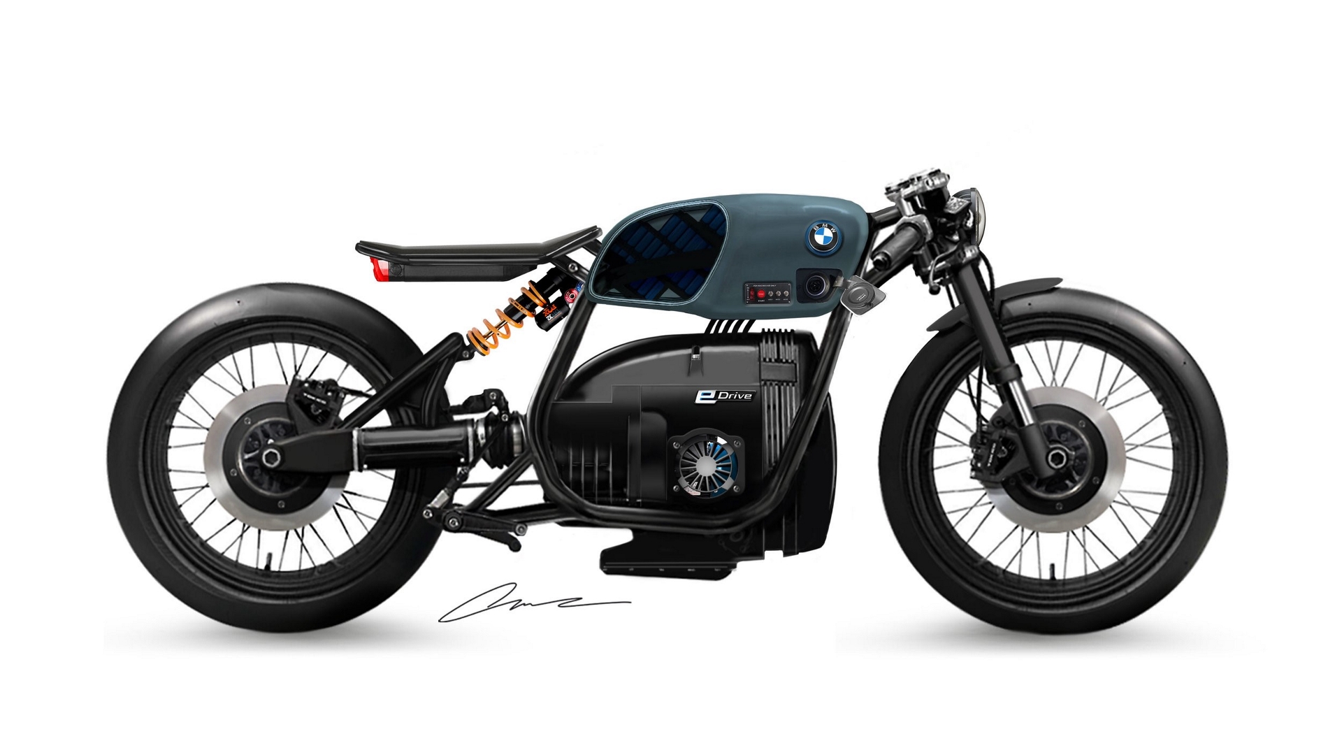 What we see here is a custom R80 with its original boxer engine replaced with a five-kilowatt electric E-Drive unit. The mods are far from over; this R80 concept has a slim minimalist seat, a heavily revised front-end, a tail delete, and some buttons and switches on the tank along with a charging port.