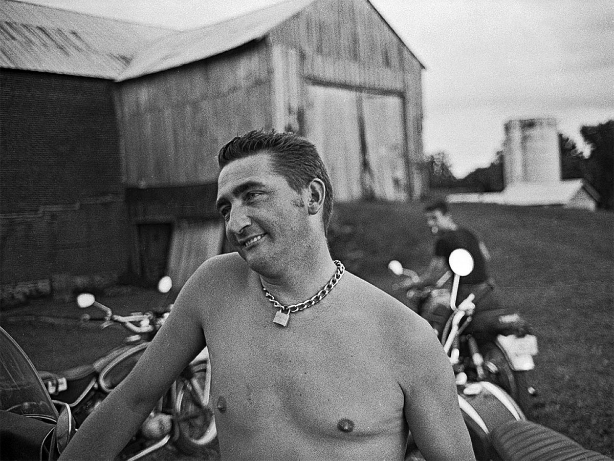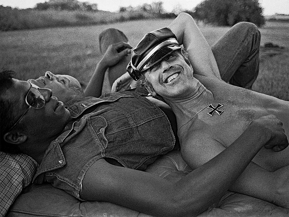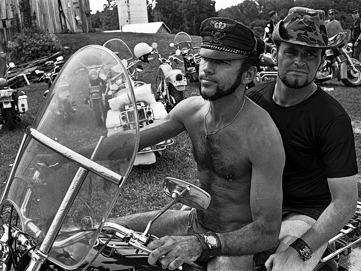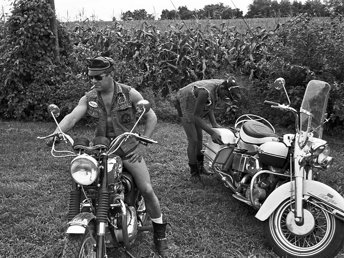 The summer of 1967 was, famously, “The Summer of Love,” during which over 100,000 of flower-bedecked and sexually liberated youth descended on San Francisco’s Haight-Ashbury district to catch a Janis Joplin show—or, as Joan Didion reported, turn their toddles “on,” to LSD. Though California was the hippie movement’s epicenter, counter-cultural waves of sexual permissiveness and civil rights activism were washing through most of the country’s urban areas, and even a few of its idylls. That year, 1967, urban photographer Sylvan Rand got a ride from New York City to rural New Jersey on the back of a motorcycle, where he spent a weekend documenting a rare community: a gay motorcycle club. Unlike the Hell’s Angels, who rode as a full-time gang, this crew of men led quiet, perhaps sequestered lives during the week, becoming a group of leather-clad, amorous guys only in the privacy of farmland hundreds of miles from the cities in which they worked. The fishing equipment, as it were, remained unused.