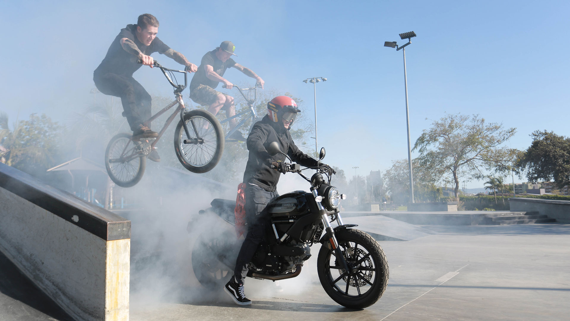 Look, I can agree that, in the Venn diagram of life, skateboarding largely overlaps with motorbikes. But fucking street food? Sorry marketers: Scramblers don’t overlap with street food. You know what does? Irritable bowels.