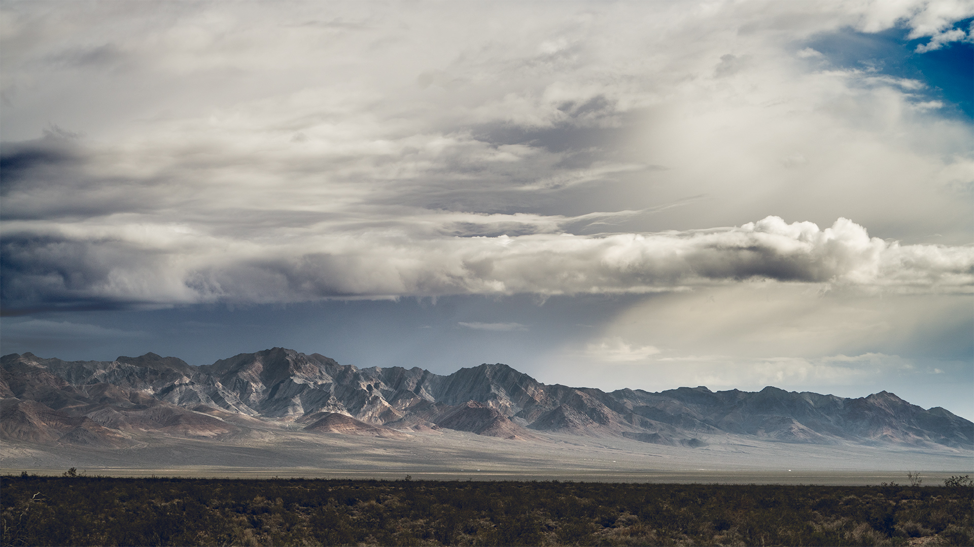If it wasn’t a flying dismount near Teakettle Junction it could be one of the thousands of collapsing mineshafts, or a sidewinder, or a spider, or a stray thread of barbed wire stretched out along my path just so. In the winter there’s cold that can kill, and rain that can sweep you away. It can hail, too. Even in the middle of the desert squall lines form, then roll in off the western mountains, moving at a fast jog across the valley. The day before we’d dodged them all the way back to the hotel, blowing sideways and leaning into the wind. It was a hell of an introduction to the desert for my companions.